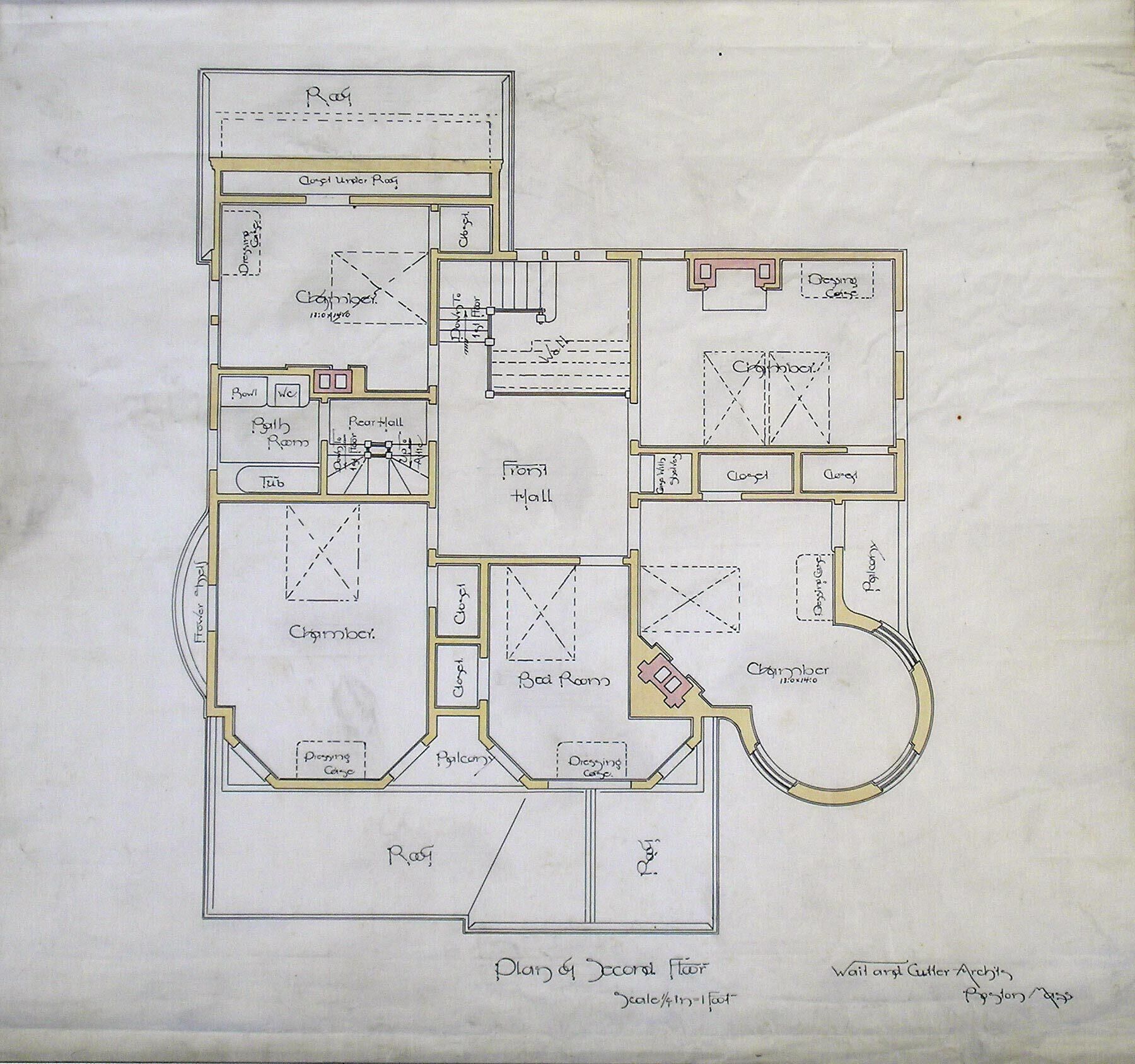 Building Name: Residence Architect: Wait & Cutter Building Location: Boston MA Still Existing?: unknown Building Description: large victorian residence with curved front porch and turret List of Drawings in set: second floor plan