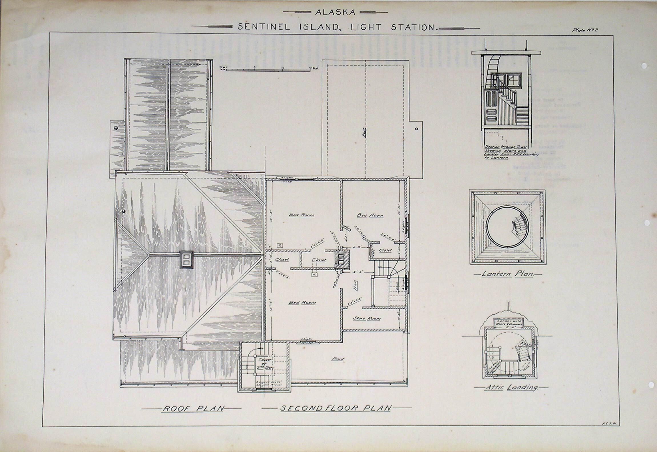 List of Drawings in set: roof plan, second floor plan, attic landing, lantern plan, section through towerLexicon