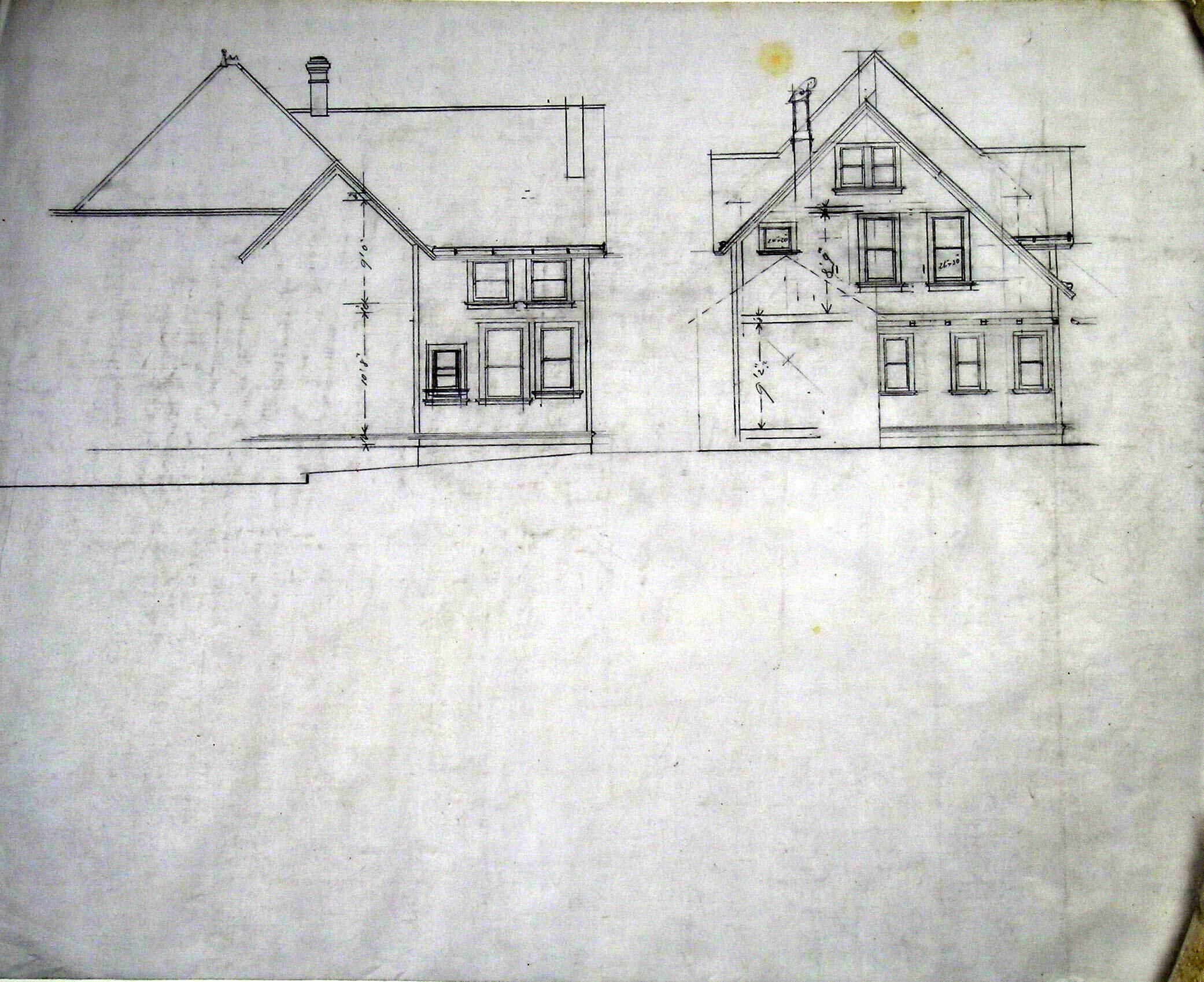 Building Name: craftsman house Architect: Building Location: unknown Still Existing?: unknown Building Description: 2-story craftsman house List of Drawings in set: front elevation, side elevation