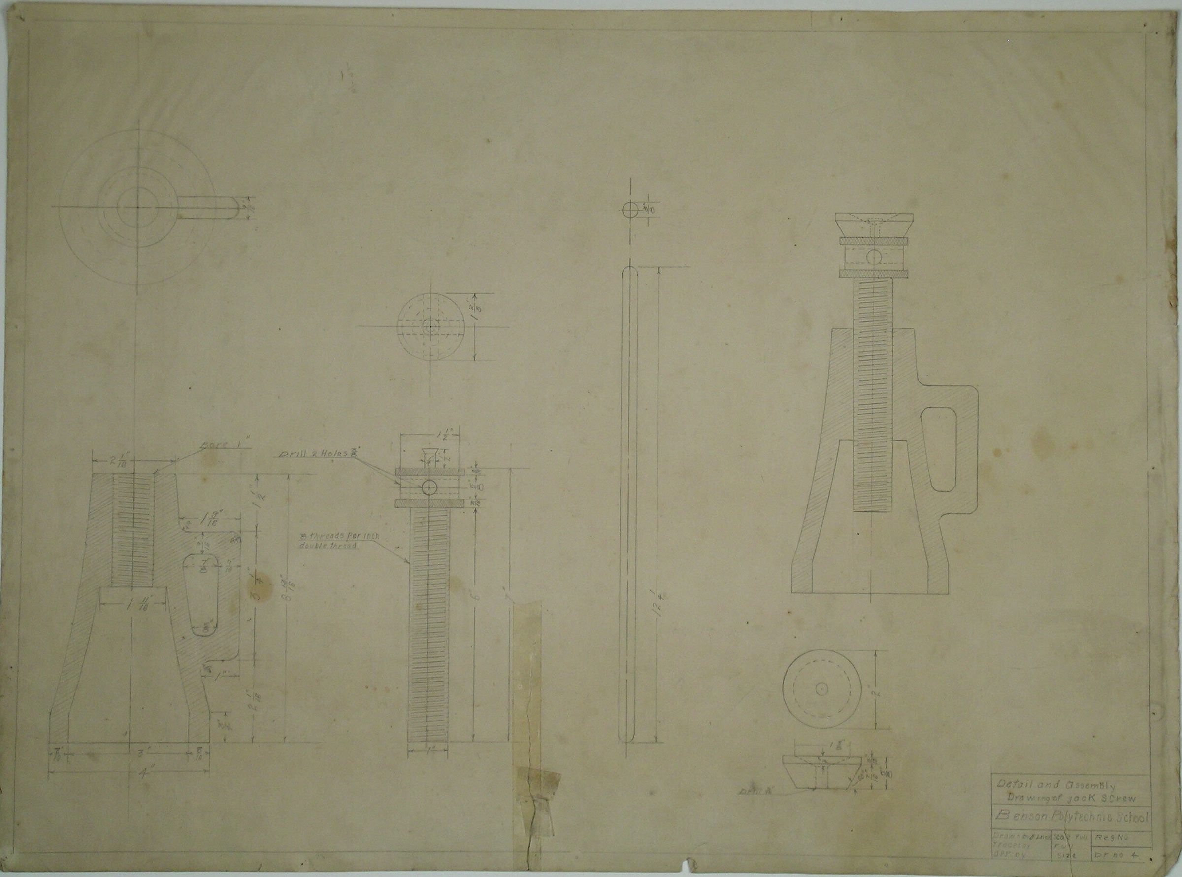 Building Name: Jack Screw Architect: C.W. Leick Building Location: Still Existing?: Building Description: List of Drawings in set: detail and assembly drawing of jack screw