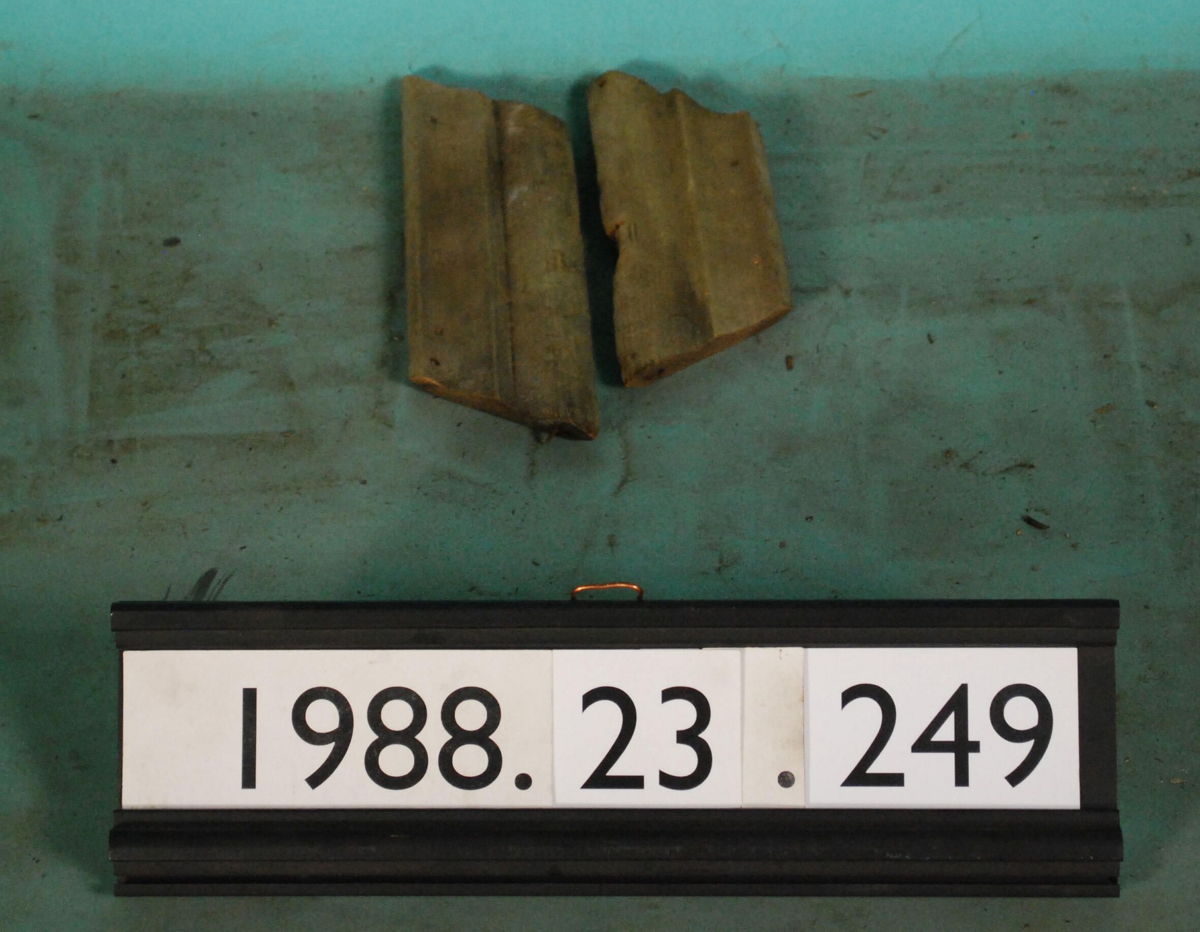 One lot of two exterior wood moldings. Originally joined with mitred ends. Both stripped of paint. Manufacturer: Place of Manufacturer: Design motif: Style: Finish: Stripped