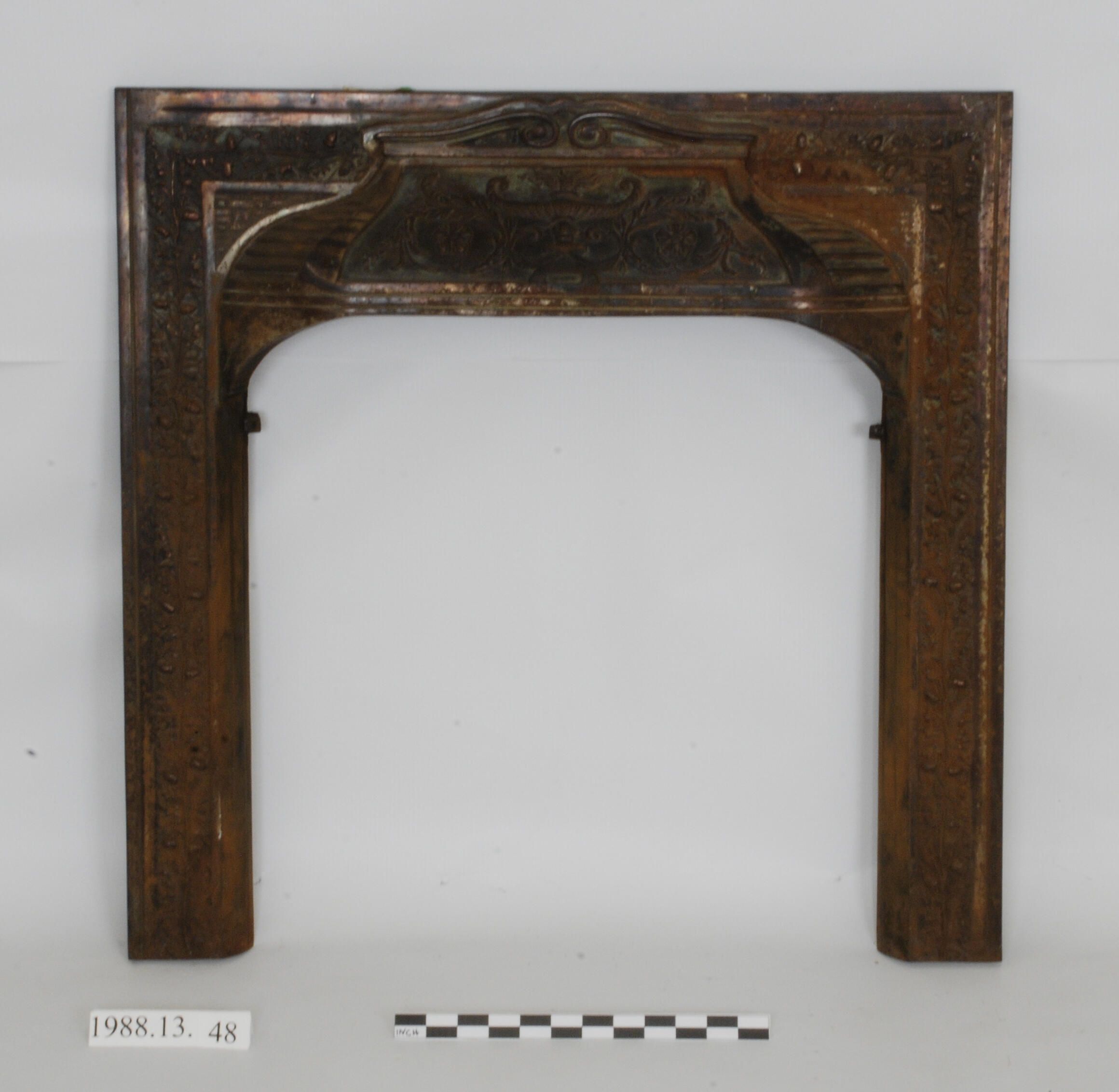 Cast Iron, Frame with projecting hood, embossed oak / acorn, central design with classical revival elements. Note: Egyption Revival Style summerfront fits into this.