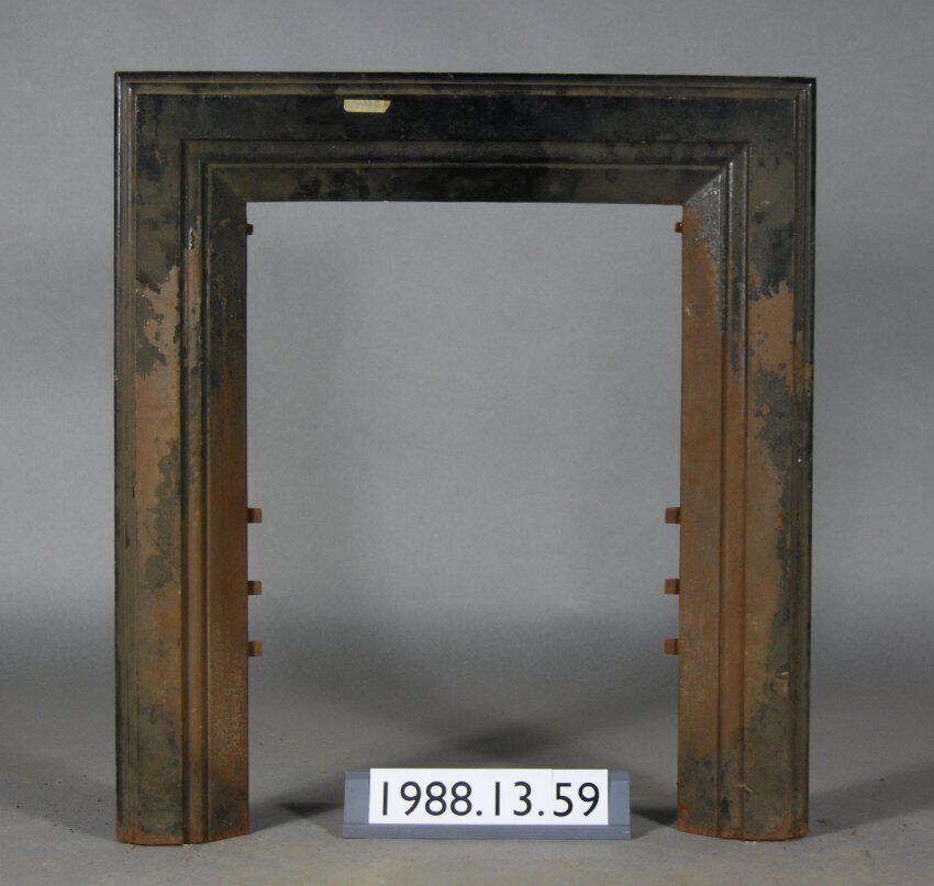 A - Frame - Rectangular cast iron frame with cove edge. Interior opening rectangular with ogee edge. Tabs on interior opening.