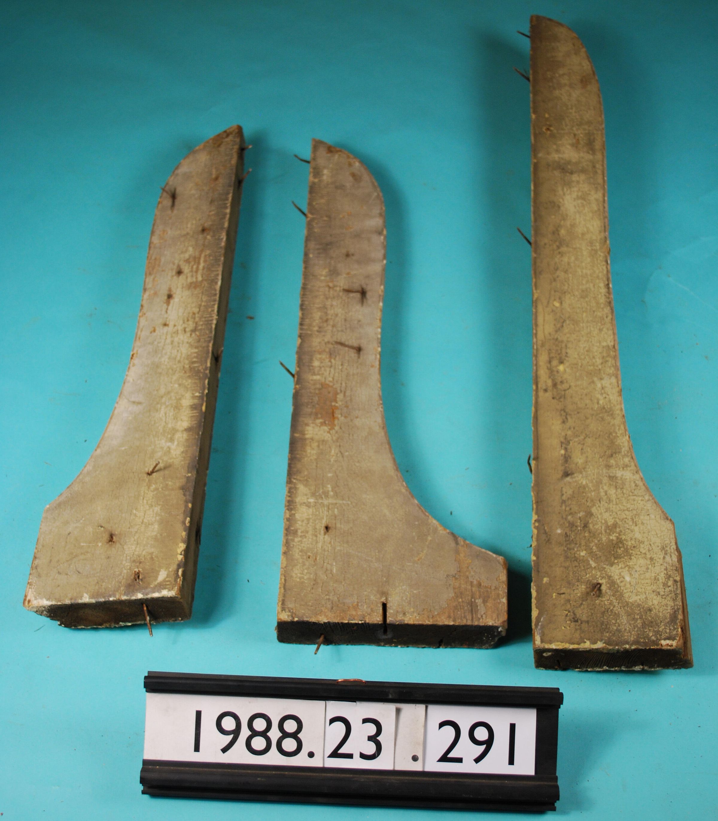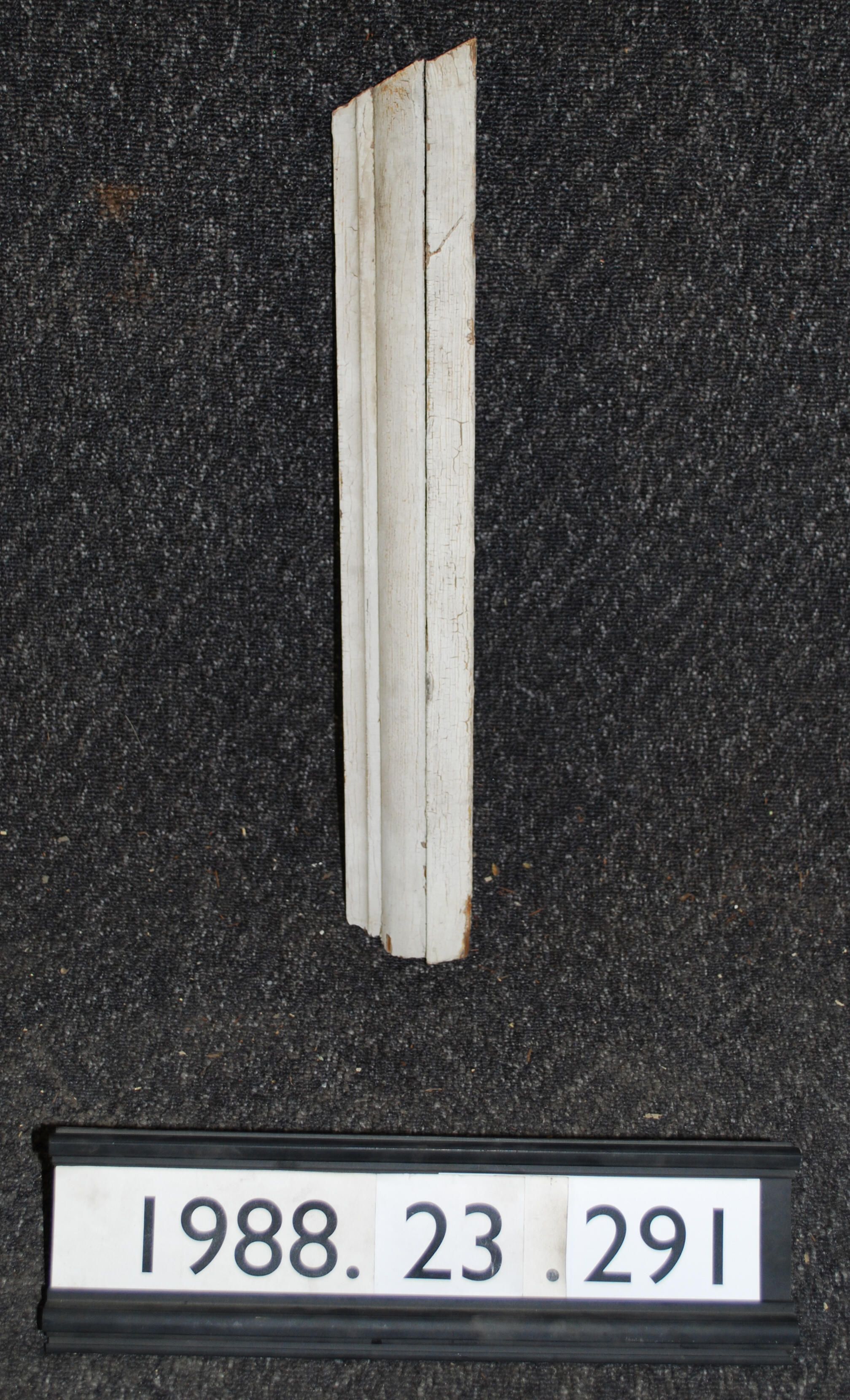 Exterior wood molding. Matches profile of moldings of window frames 1988.23.279-1988.23.284. (Length is too long to actually fit). Painted white.