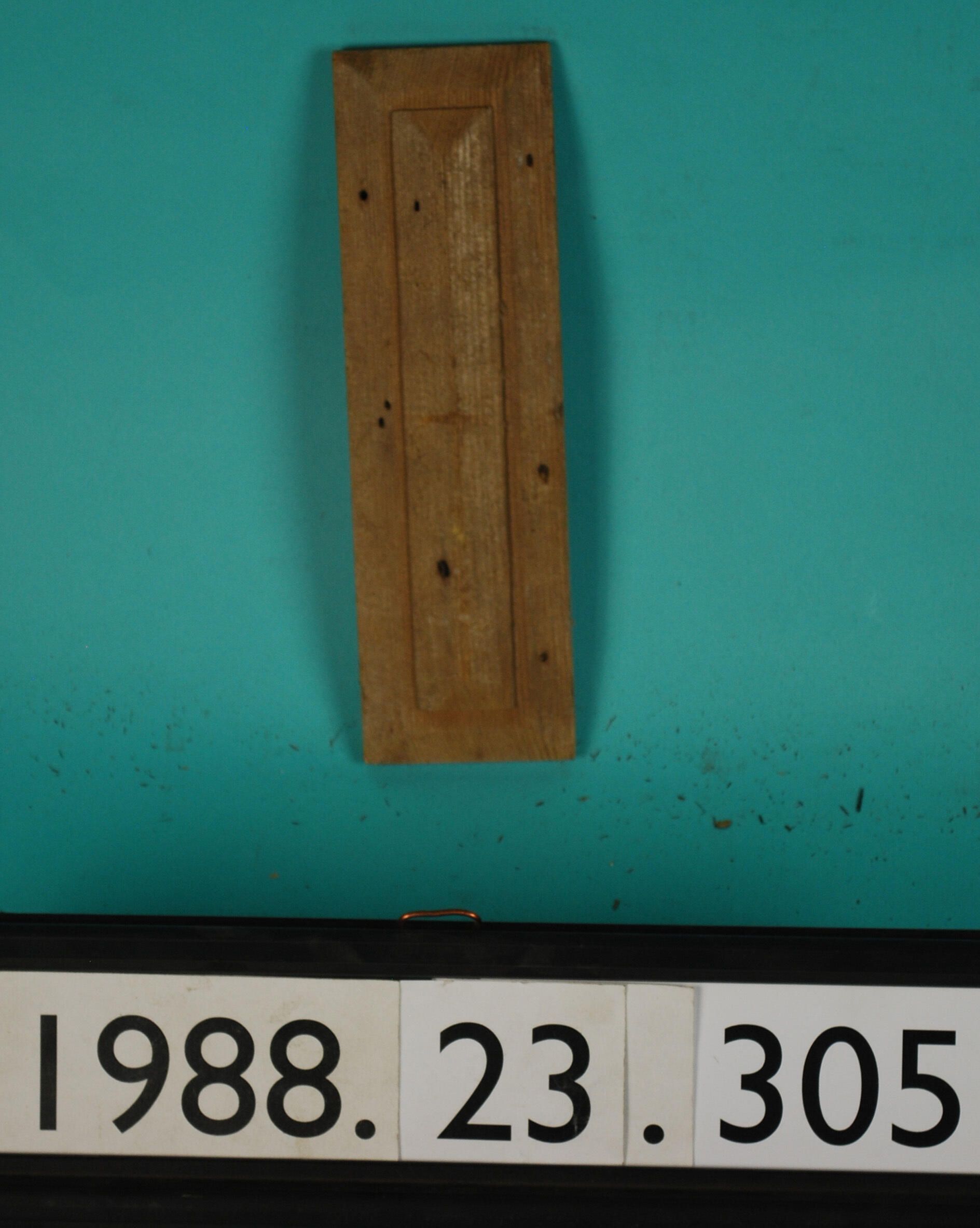 Exterior wood rectangular panel. Stripped of paint. Inscriptions or Markings: Manufacturer: Place of Manufacturer: Design motif: Style: Finish: Stripped of Paint