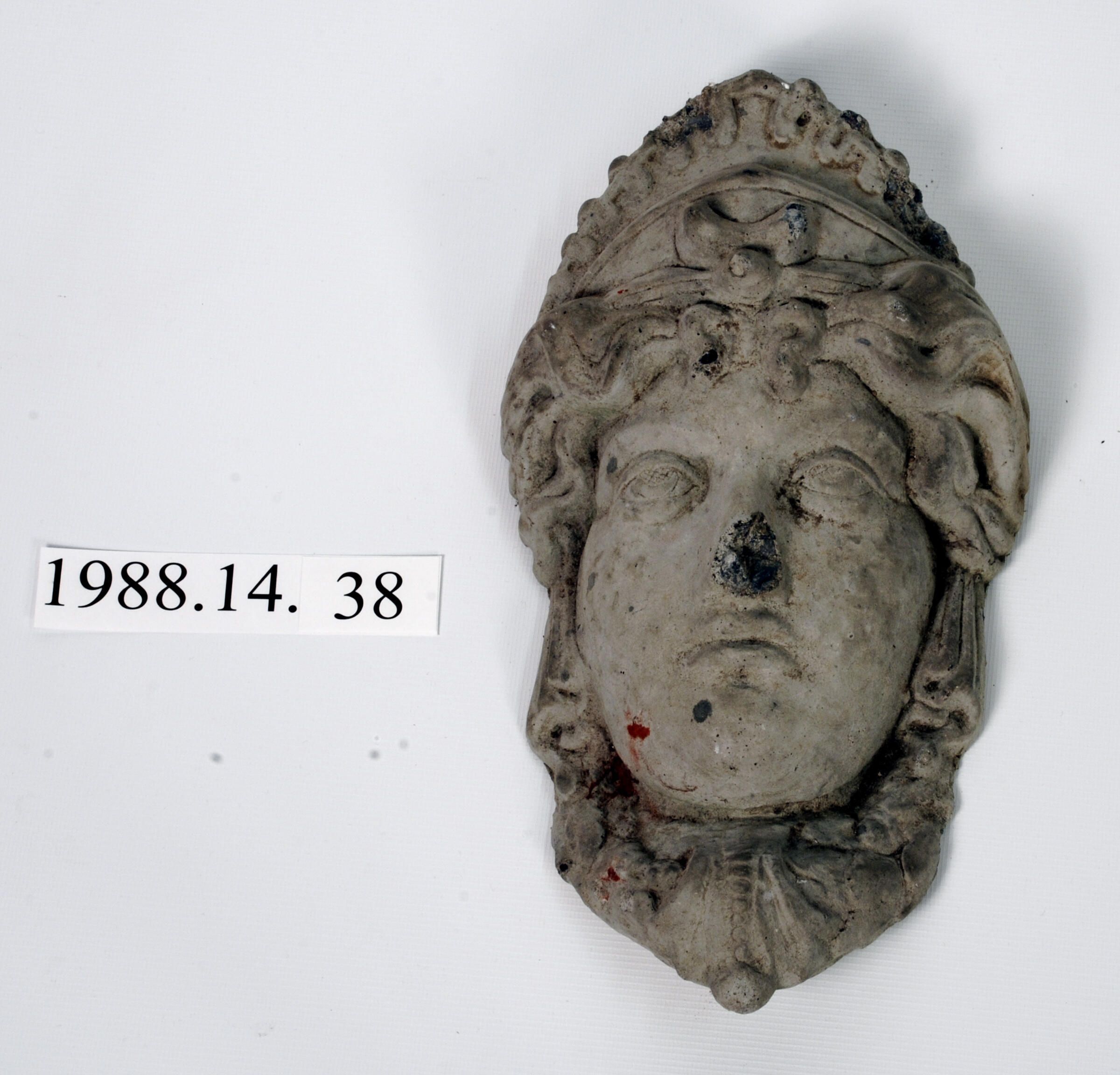 Reproduction molded plaster. Classical Greco-Roman female figure head with Tiara. Broken nose. Missing piece. Similar to "Minerva" found in the Blagen Block. See Jerry Bosco's photos.
