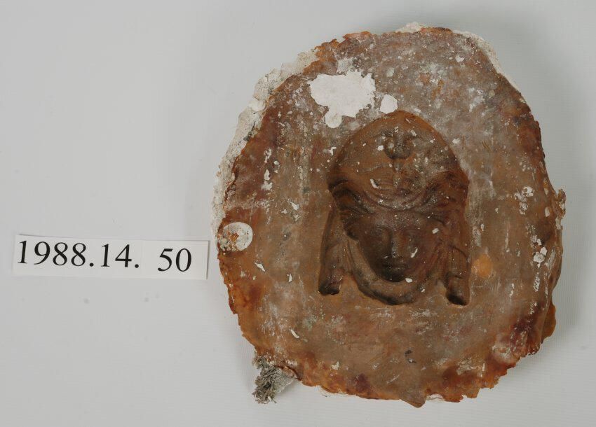 Rubber facing with plaster mother mold to cast. Classic Revival syle. Female figure head. Plaster backing re-inforced with cloth. (Matches 1988.14.49).