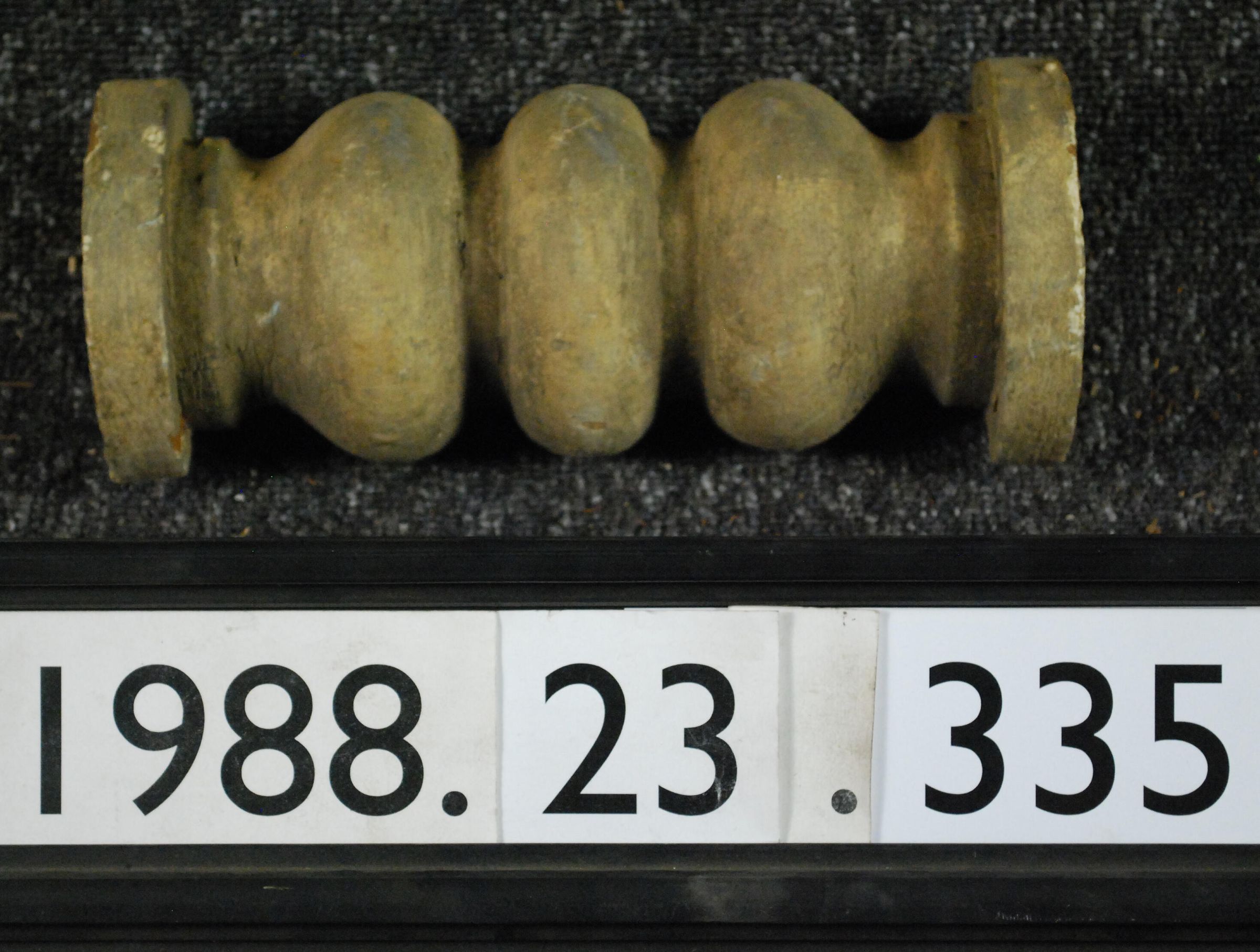 Exterior wood turned ornament. Painted tan colored. Inscriptions or Markings: Manufacturer: Place of Manufacturer: Design motif: Style: Finish: Painted Tan Colored
