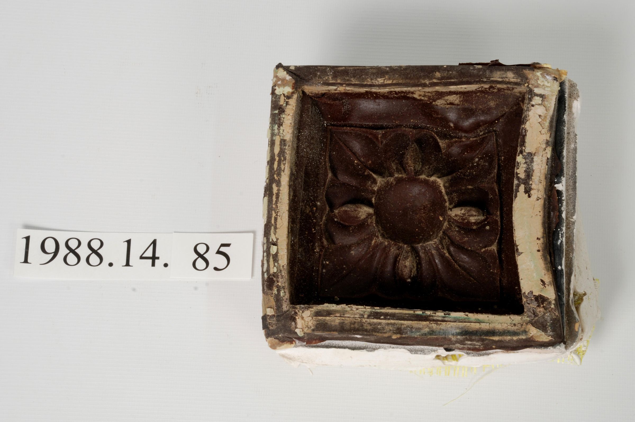 Rubber facing with nylon reinforced plaster mother mold. (See 1988.14.60). Square with square rosette. Botanical motif.