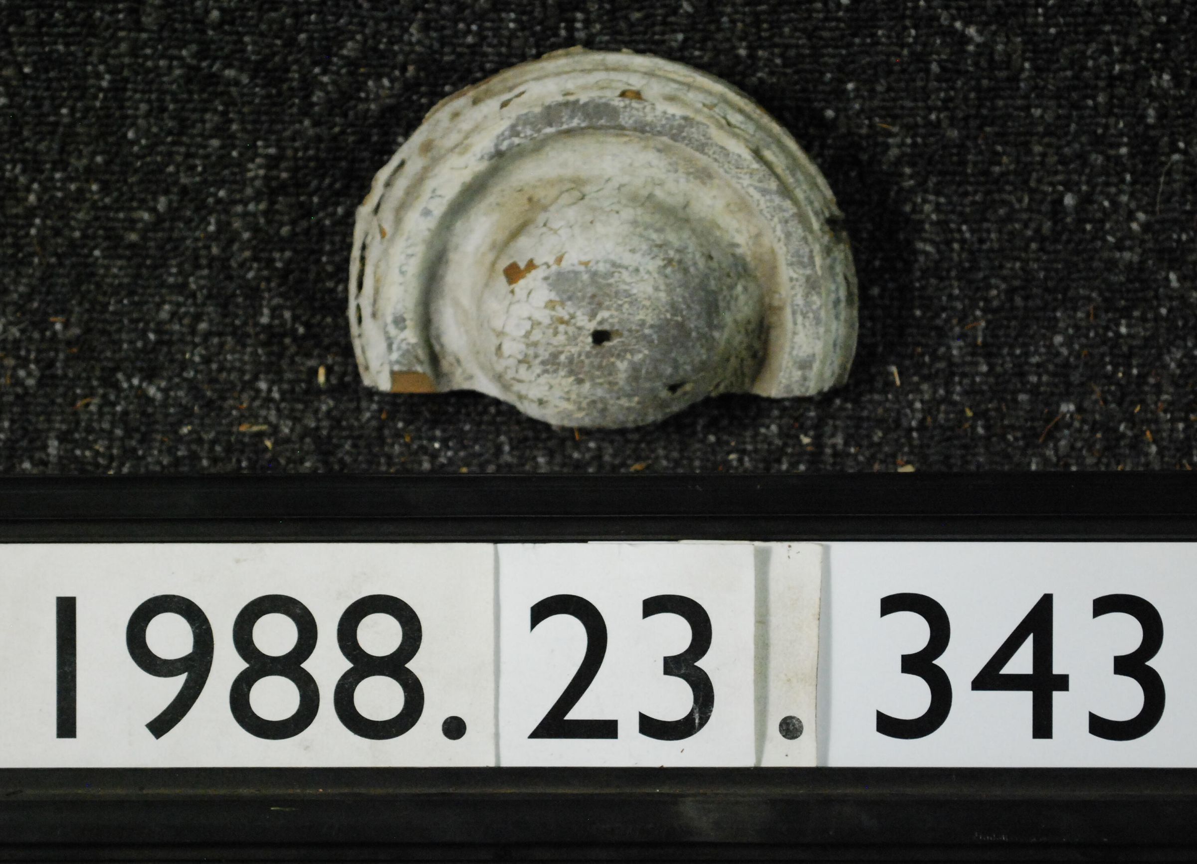Exterior wood. Circular wood bullseye pattern. Missing 1/3 chunk of wood. Outer ring pattern. Cedar. Painted. Inscriptions or Markings: Manufacturer: Place of Manufacturer: Design motif: Style: Finish: Painted