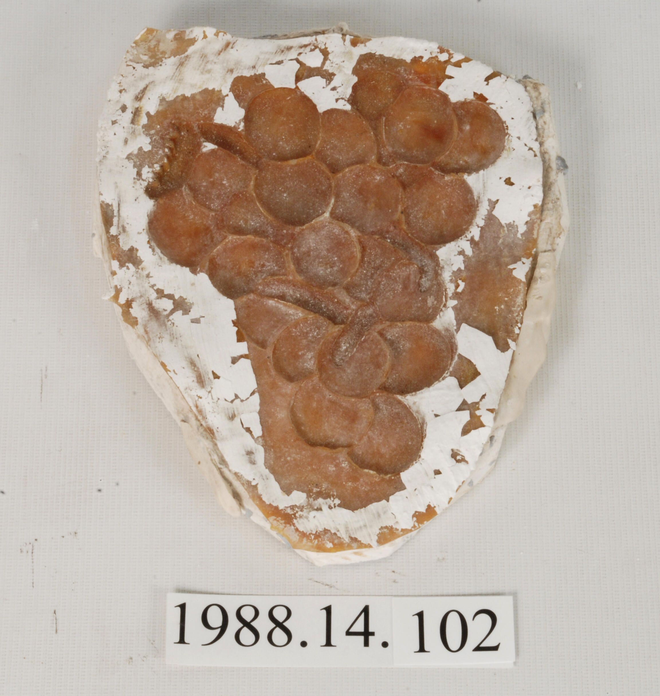 Rubber facing with plaster mother mold to cast grape cluster motif ornament.