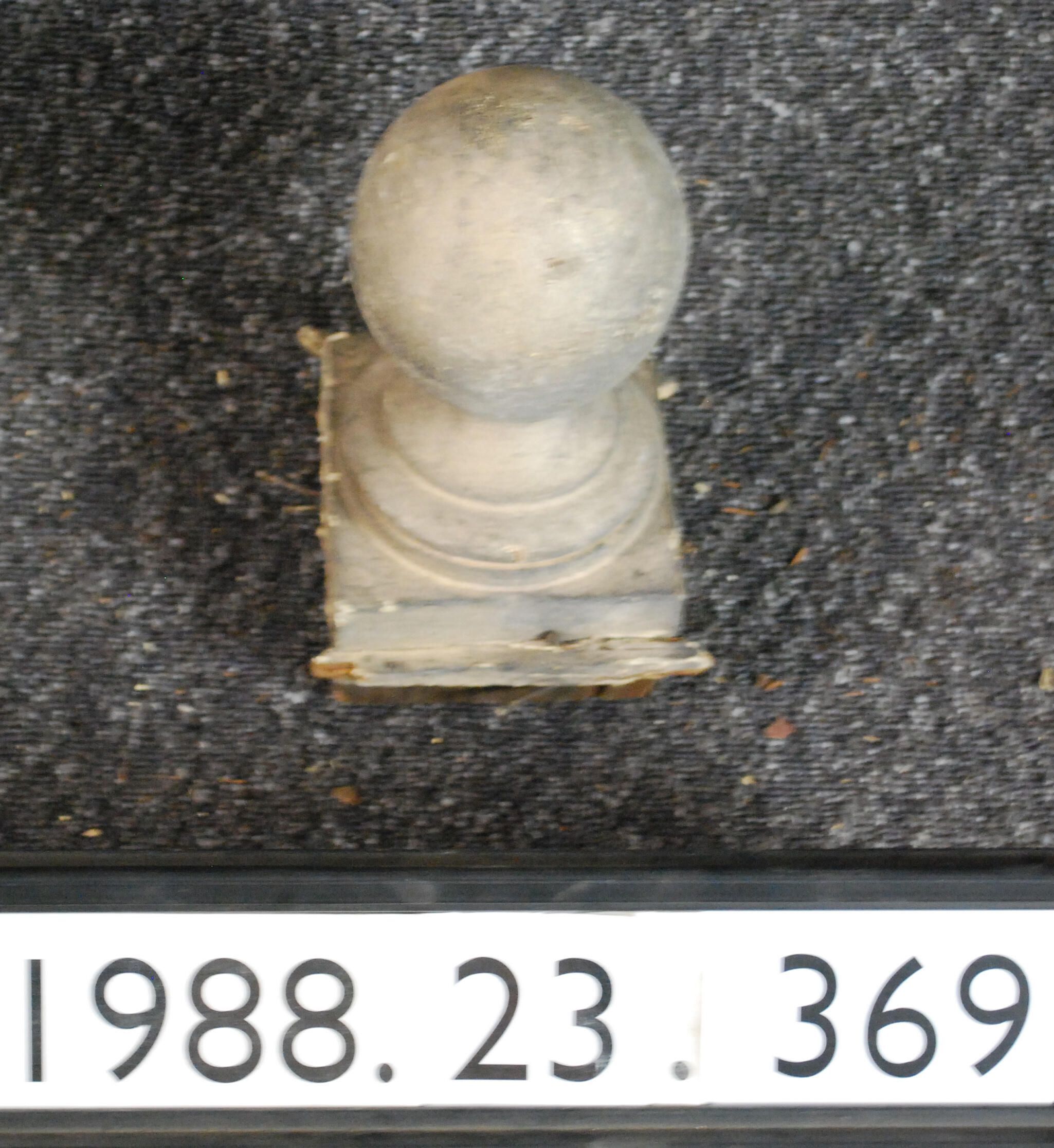 Exterior wood turned spherical ornament. Painted. Inscriptions or Markings: Manufacturer: Place of Manufacturer: Design motif: Style: Finish: Painted