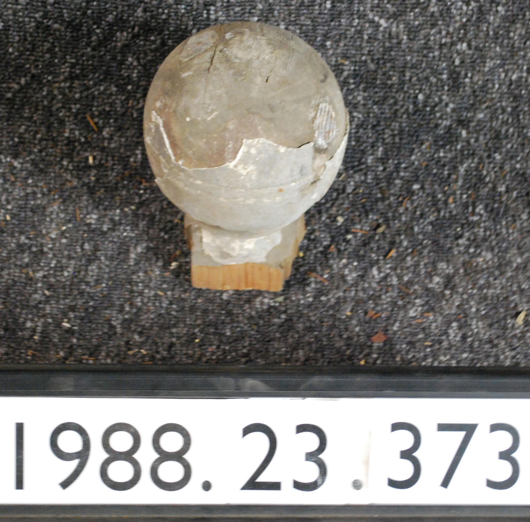 Exterior wood turned spherical ornament. (Pieces missing). Painted grey. Inscriptions or Markings: Manufacturer: Place of Manufacturer: Design motif: Style: Finish: Painted Grey