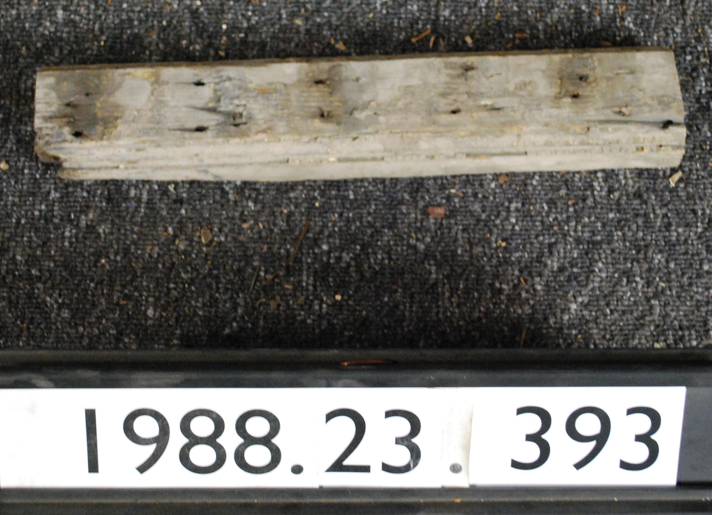 Exterior wood rail. Molded edge. Evidence of being related to same origin as 392 (?) Painted grey. Inscriptions or Markings: Manufacturer: Place of Manufacturer: Design motif: Style: Finish: Painted Grey