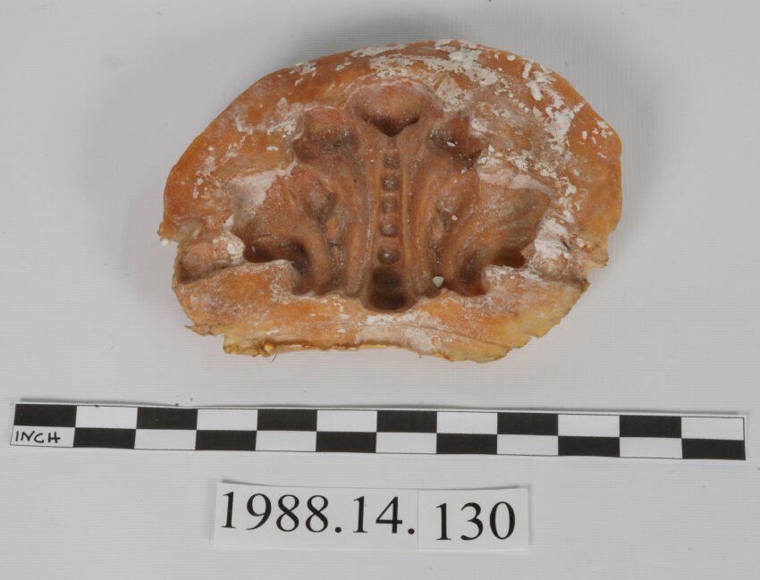 Rubber facing only, to cast plaster ornament with scrolled leaf and bead motif.