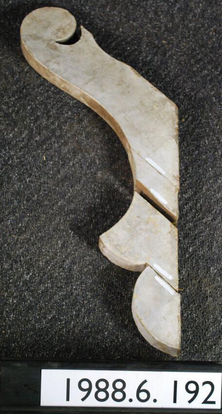 Exterior wood bracket. Fret-cut. Broken into multiple pieces - some parts missing. Painted white. Inscriptions or Markings: Manufacturer: Place of Manufacturer: Design motif:: Style: Finish: Painted White