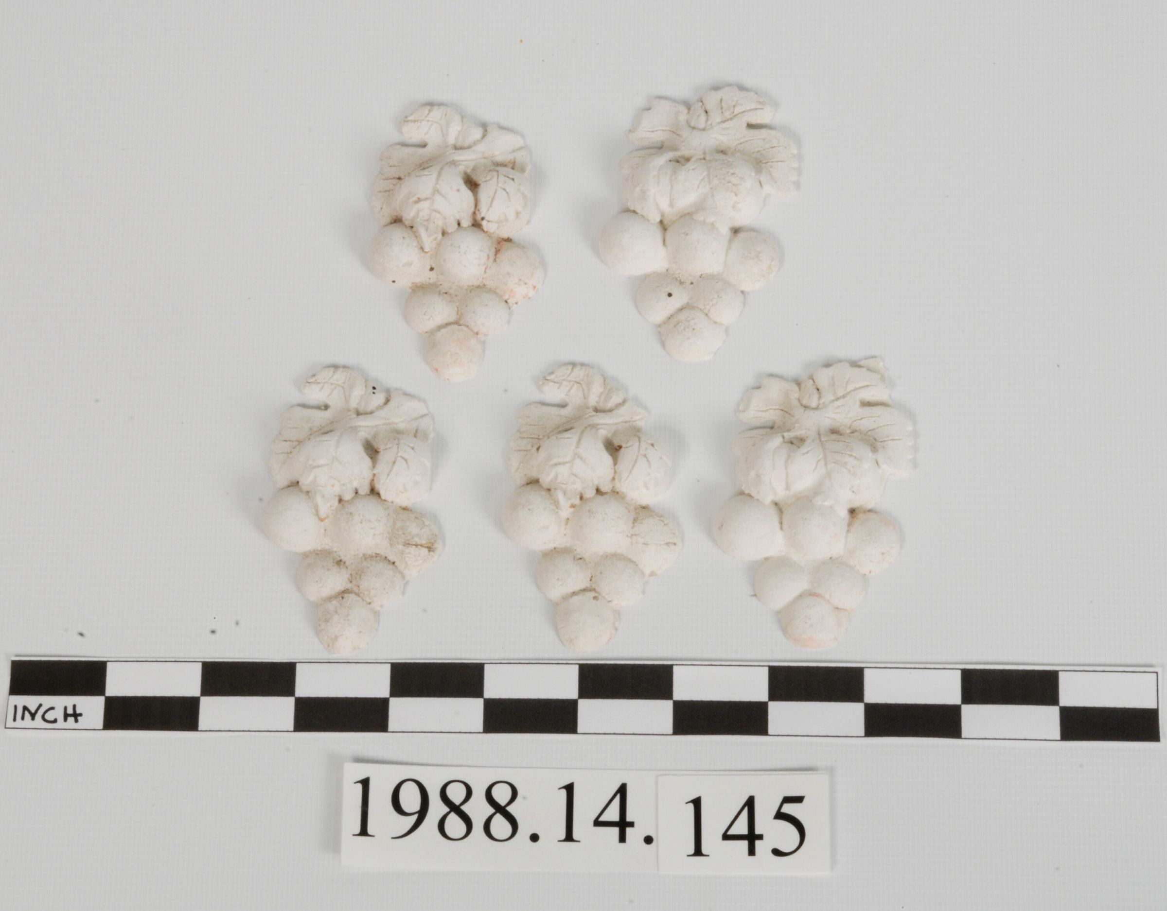 Reproduction molded plaster. Five grape cluster motif ornaments.