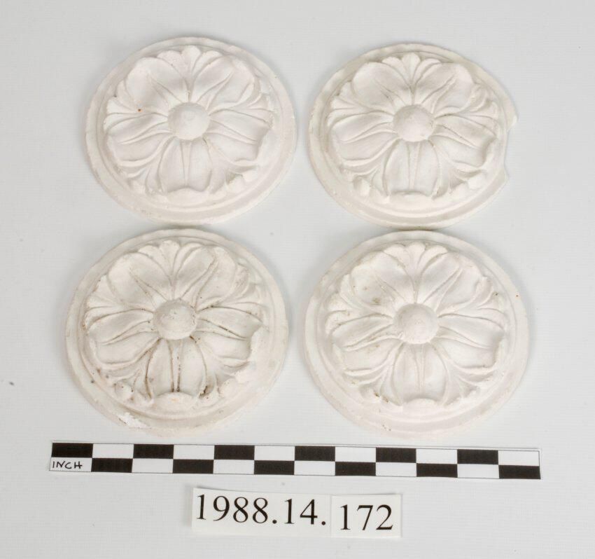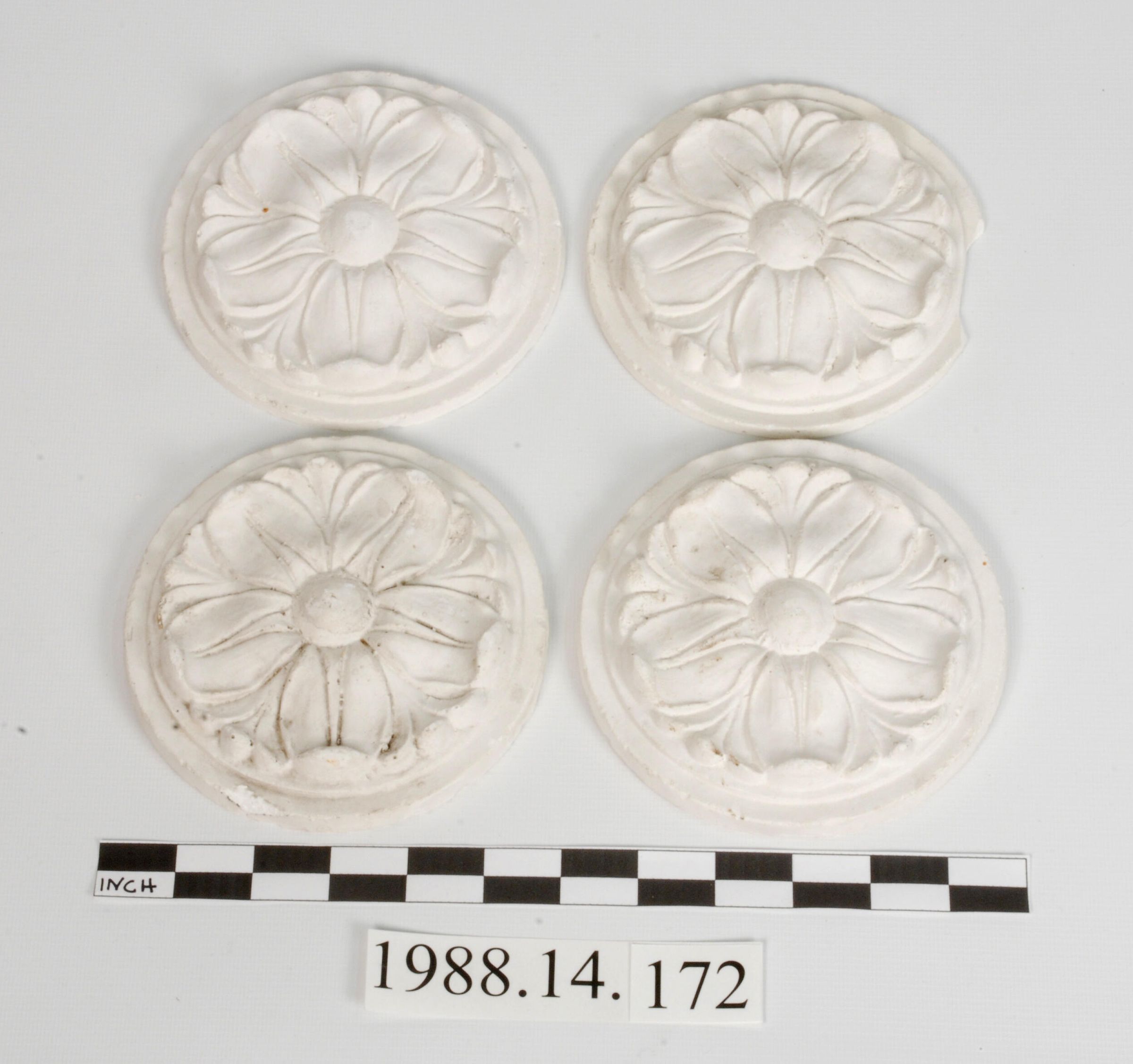 Four Reproduction molded plaster rosettes. Botanical motif.