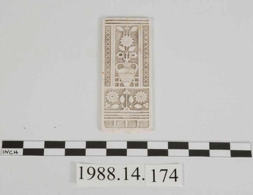 Reproduction molded plaster. Rectangular flower / vase / geometriic motifs. (Probably derived from hardware design).