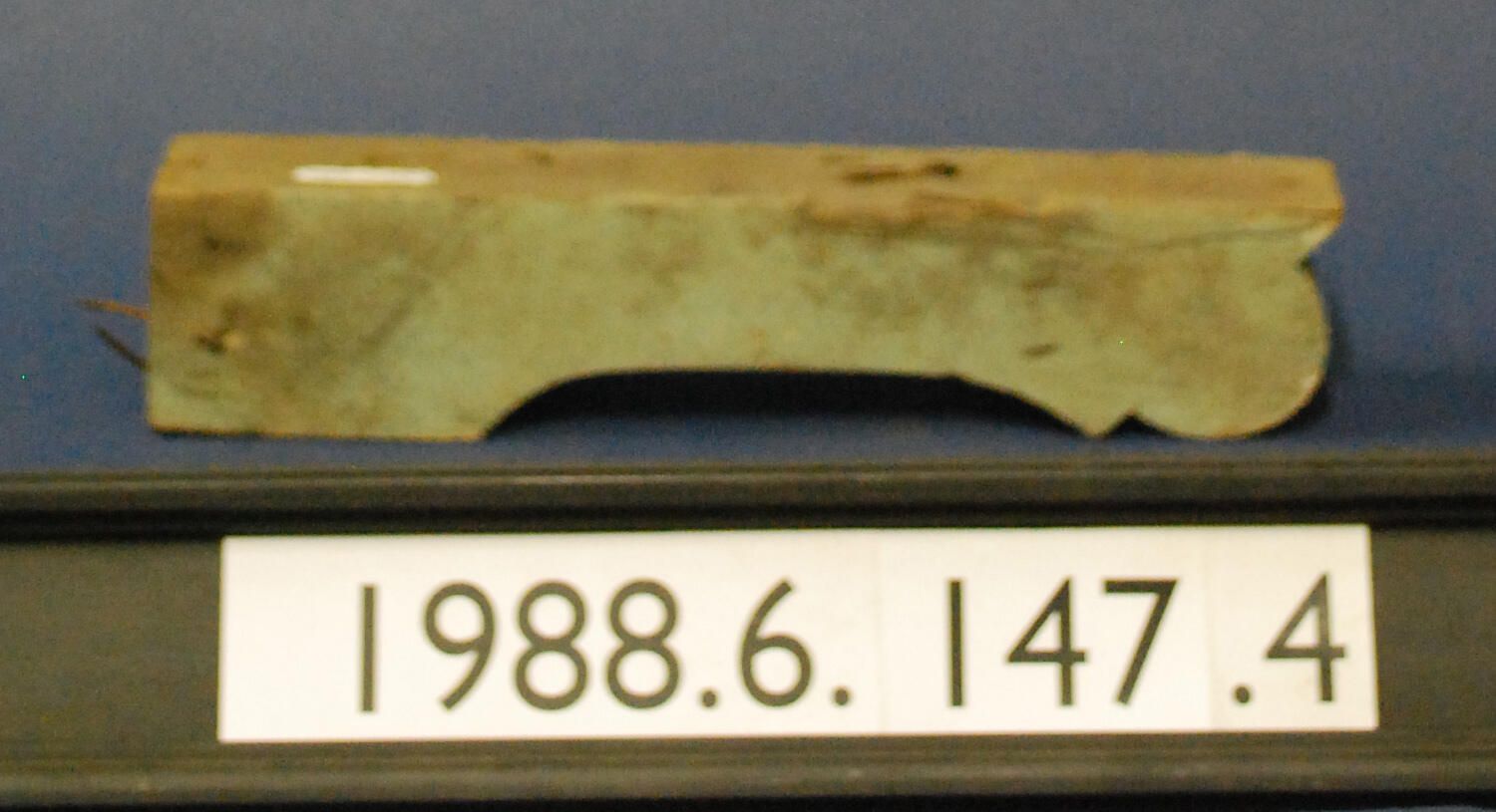 Wood bracket. Compound contour. Shallow cut-out. Rounded end. Paint remnants. Inscriptions or Markings: Manufacturer: Place of Manufacturer: Design motif: Style: Finish: Painted