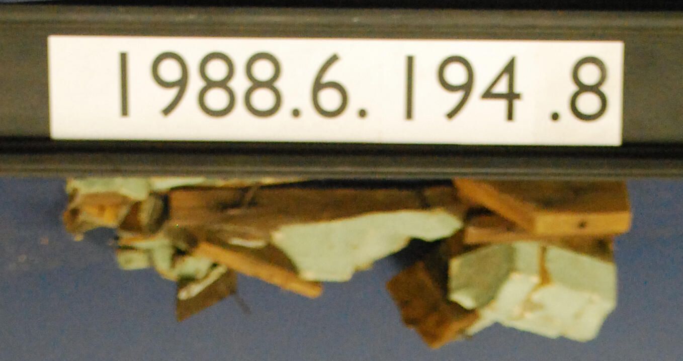 One lot of approximately twenty-eight exterior wood bracket fragments, presumed to relate to bracket series 1988.6.194-1988.6.194.6.Painted green. Inscriptions or Markings: Manufacturer: Place of Manufacturer: Design motif: Style: Finish: Painted