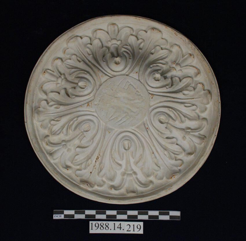 Reproduction molded plaster. Circular medallion with stylized Acanthus leaf motif .