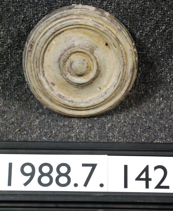 One interior wood bullseye ornament. Painted. Inscriptions or Markings: Manufacturer: Place of Manufacturer: Design Motif: Style: Finish: Painted