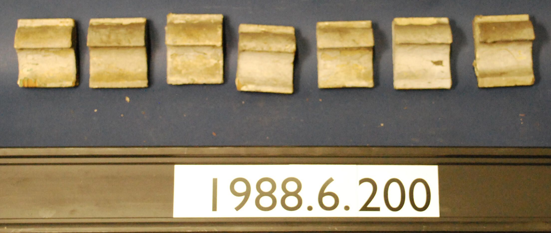 One lot of seven exterior wood brackets. Painted grey. From same origin as 1988.6.199, with same paint. Inscriptions or Markings: Manufacturer: Place of Manufacturer: Design motif: Style: Finish: Painted Grey