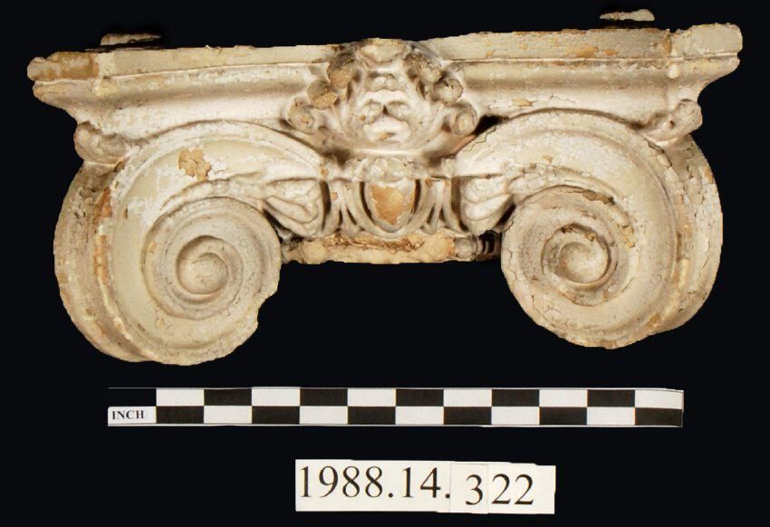 Historic plaster complete Ionic Capital with volutes. Egg and dart, Botanical motifs. Painted off-white.