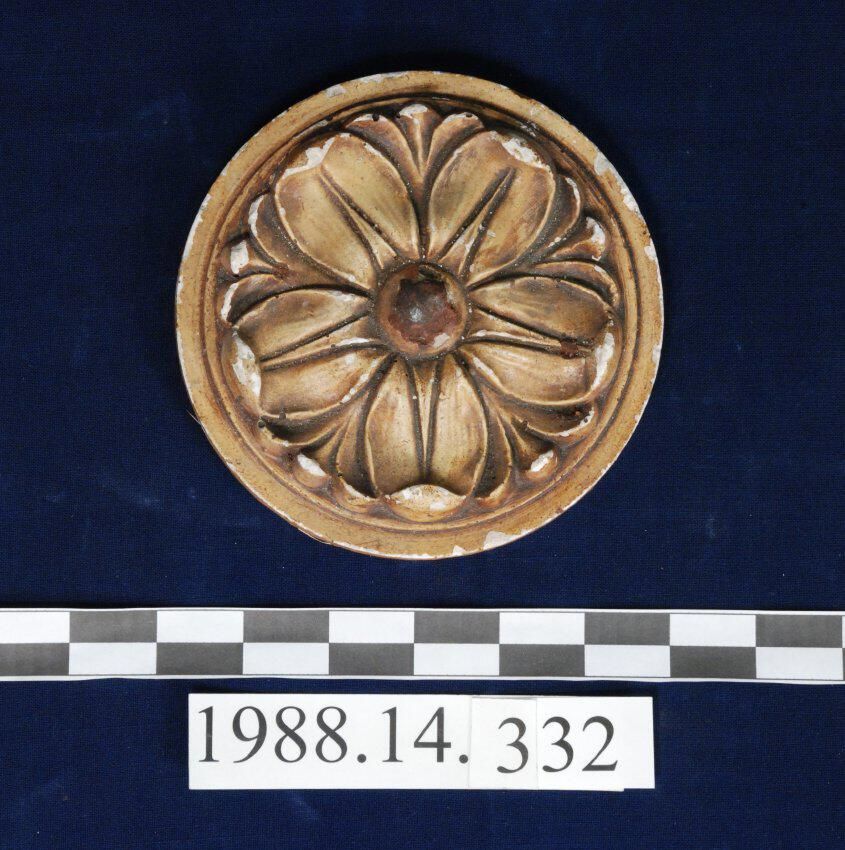 Historic plaster rosette. Botanical motif. Central hole filled with wax. Medallion is reinforced with plant fibre.