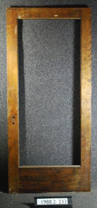Interior door., with single sash opening. Glass pane is missing. Has mortise lock,. All other hardware is missing. Varnished. Inscriptions or Markings: Manufacturer: Place of Manufacturer: Design Motifs: Style: Finish: Varnished