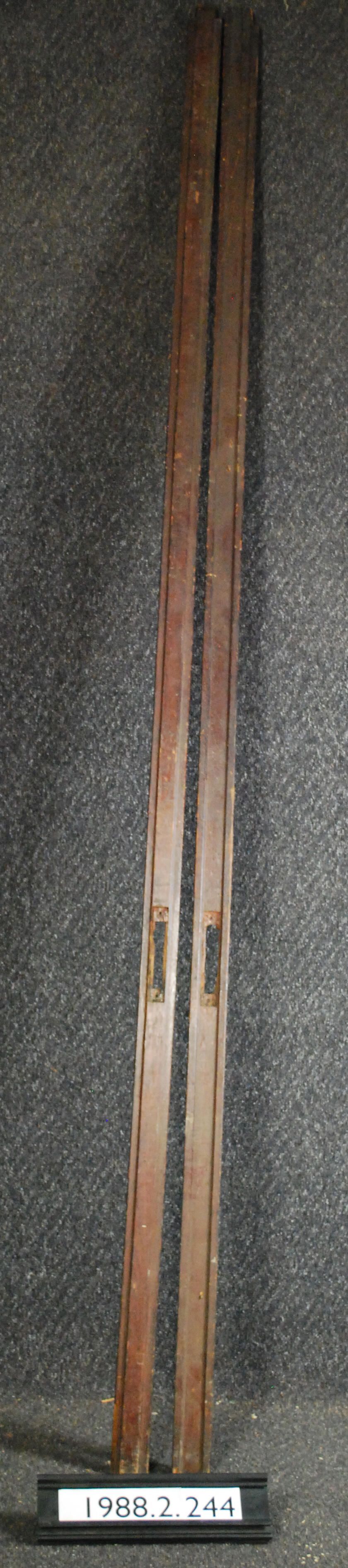 Interior moldings from edges of sliding pocket doors. Matched pair. Made of ash. Varnished. Inscriptions or Markings: Manufacturer: Place of Manufacturer: Design Motifs: Style: Finish: Varnished