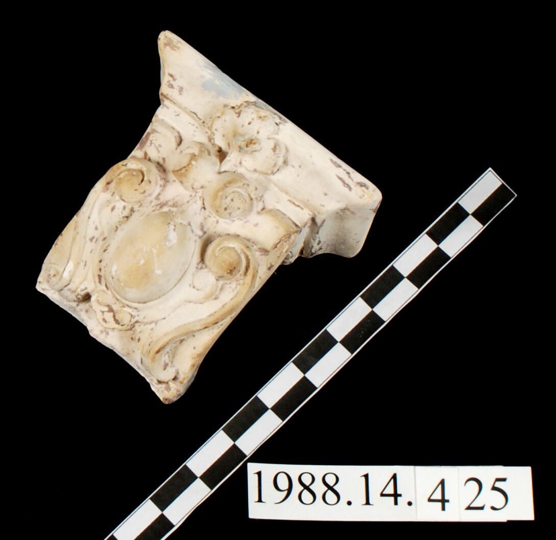 Historic plaster bracket. Rococo Revival style. Egg and scroll motif. Pendant end is missing. Paint stripped.