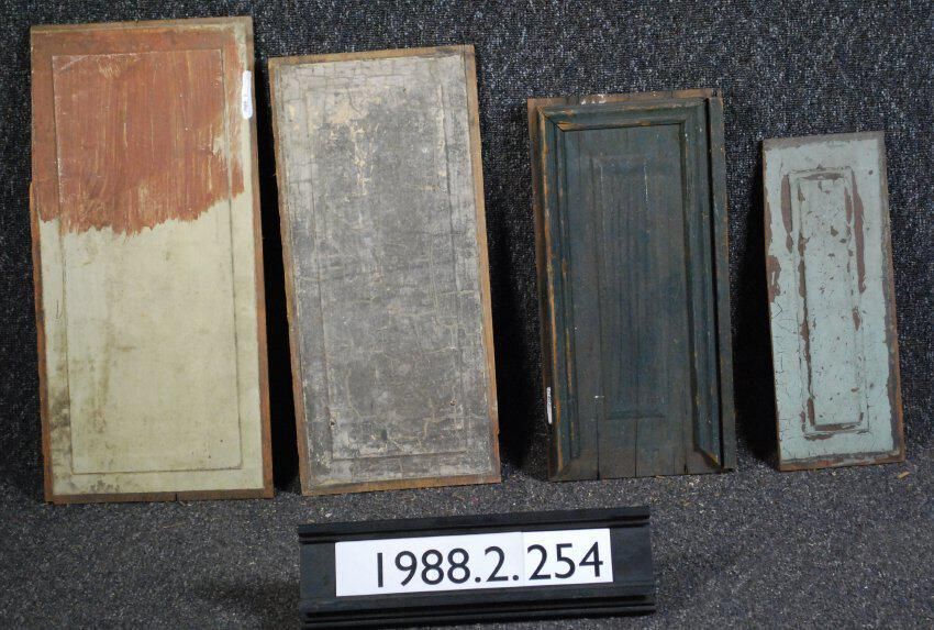 One lot of four door panels from multiple origins. Painted. Inscriptions or Markings: Manufacturer: Place of Manufacturer: Design Motifs: Style: Finish: Painted