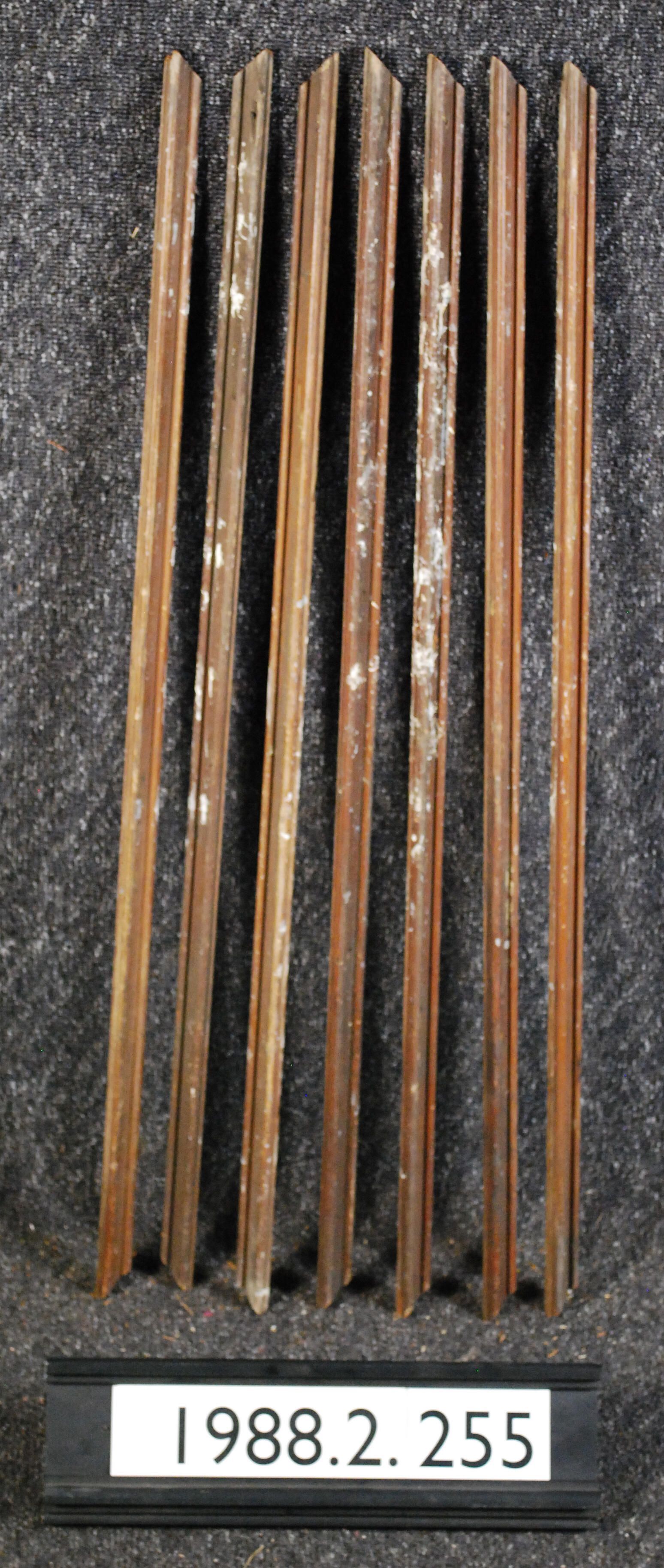 One lot of seven interior wood door moldings (originally applied to panels). Varnished. Inscriptions or Markings: Manufacturer: Place of Manufacturer: Design Motifs: Style: Finish: Varnished