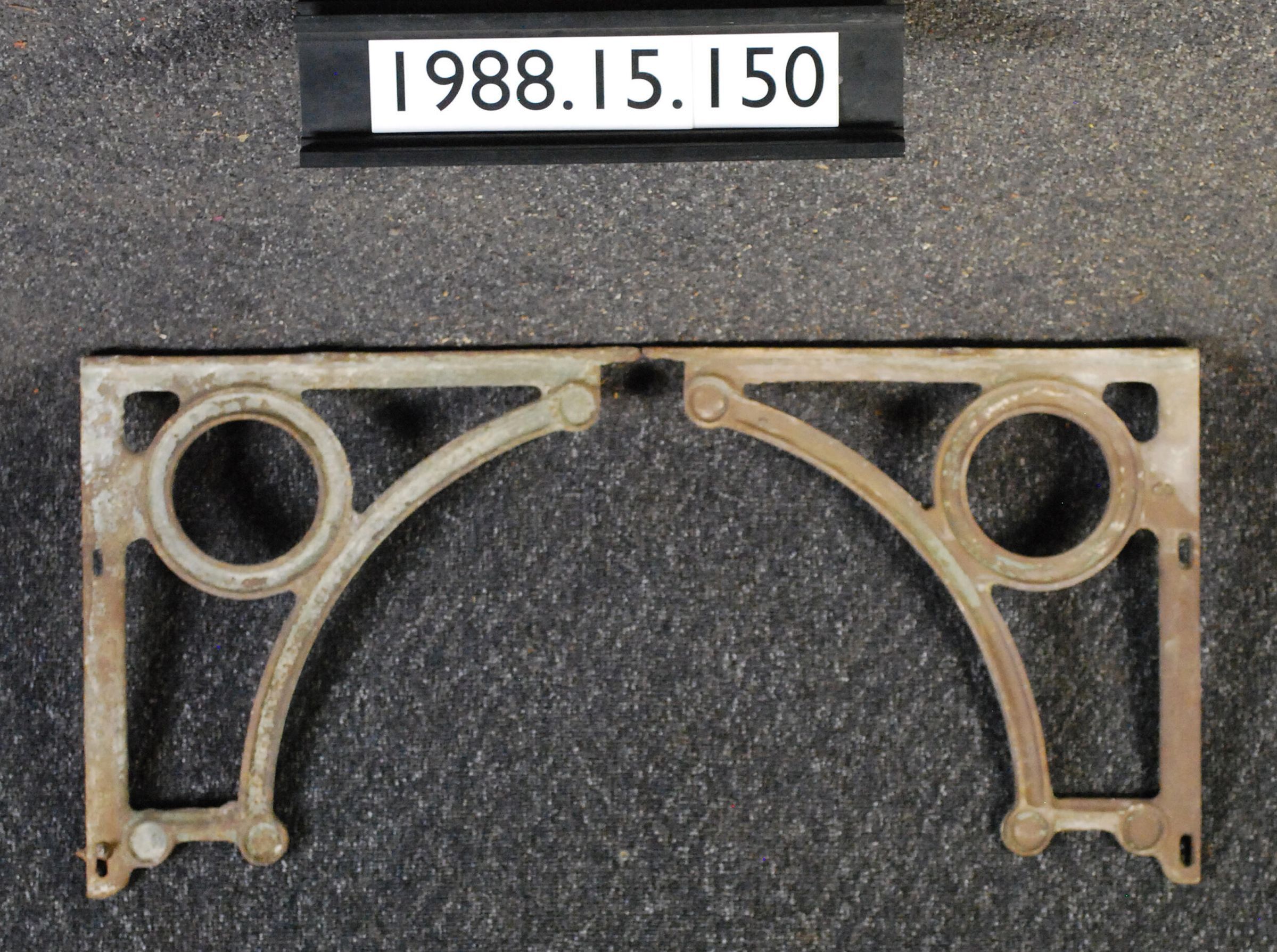 Pair of cast iron brackets. Originally used to support plumbing fixture (sink). Painted grey. Inscriptions or Markings: Manufacturer: Place of Manufacture: Design motif: Style: Finish: Painted Grey