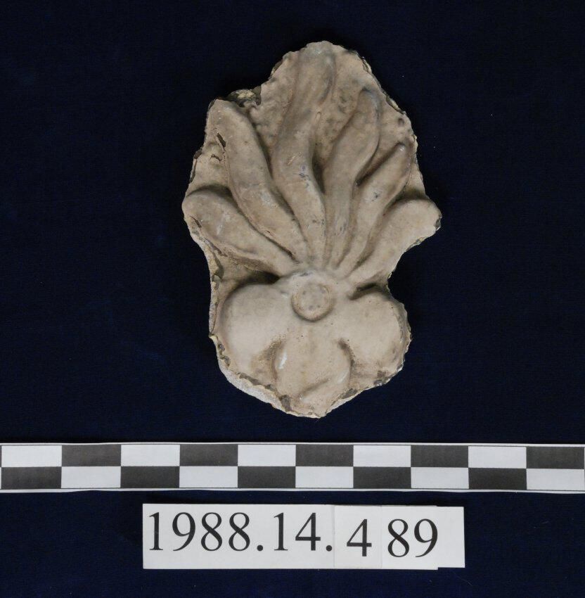 Historic plaster ornamental fragment from unknown larger piece. Botanical motif. Painted beige.