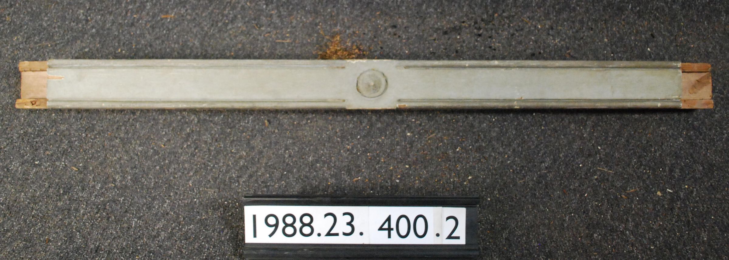 Exterior wood header. Same origin as 1988.23.400-1988.23.401.1. Presumed to be header for door or window opening. Painted dark greyish-green.
