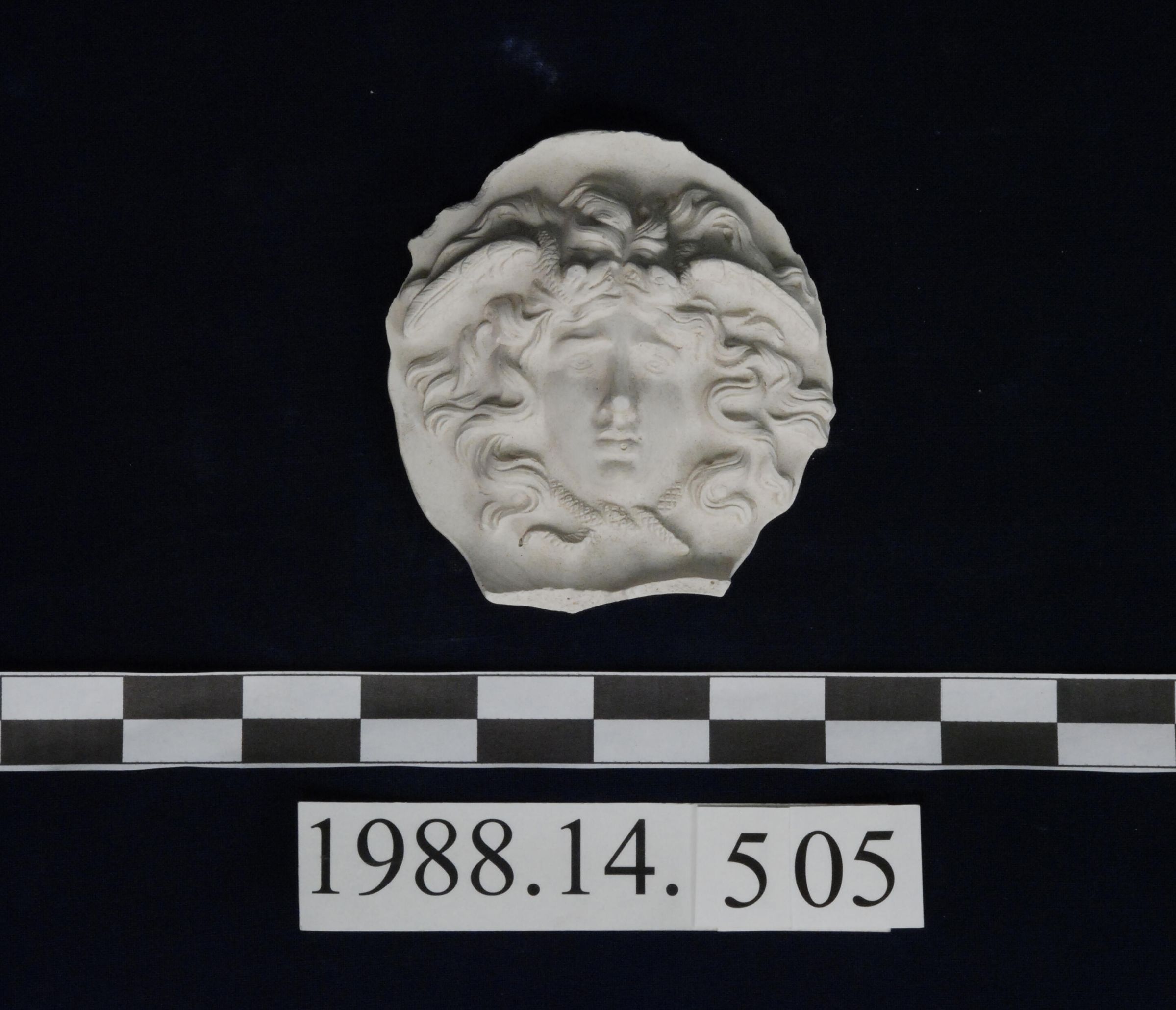 Reproduction molded plaster. Human female figure head with headdress wings.