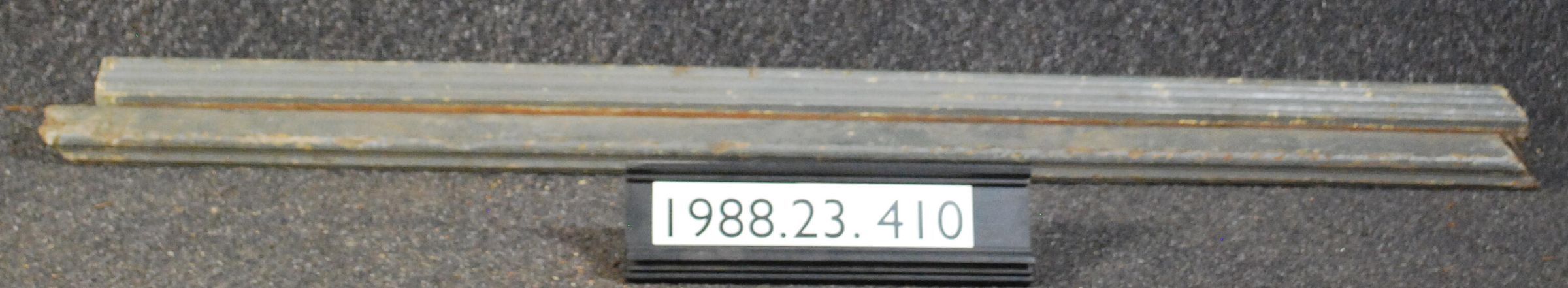 One lot of two exterior wood (porch?) handrails. Top rails, painted grey. Inscriptions or Markings: Manufacturer: Place of Manufacturer: Design motif: Style: Finish: Painted Grey