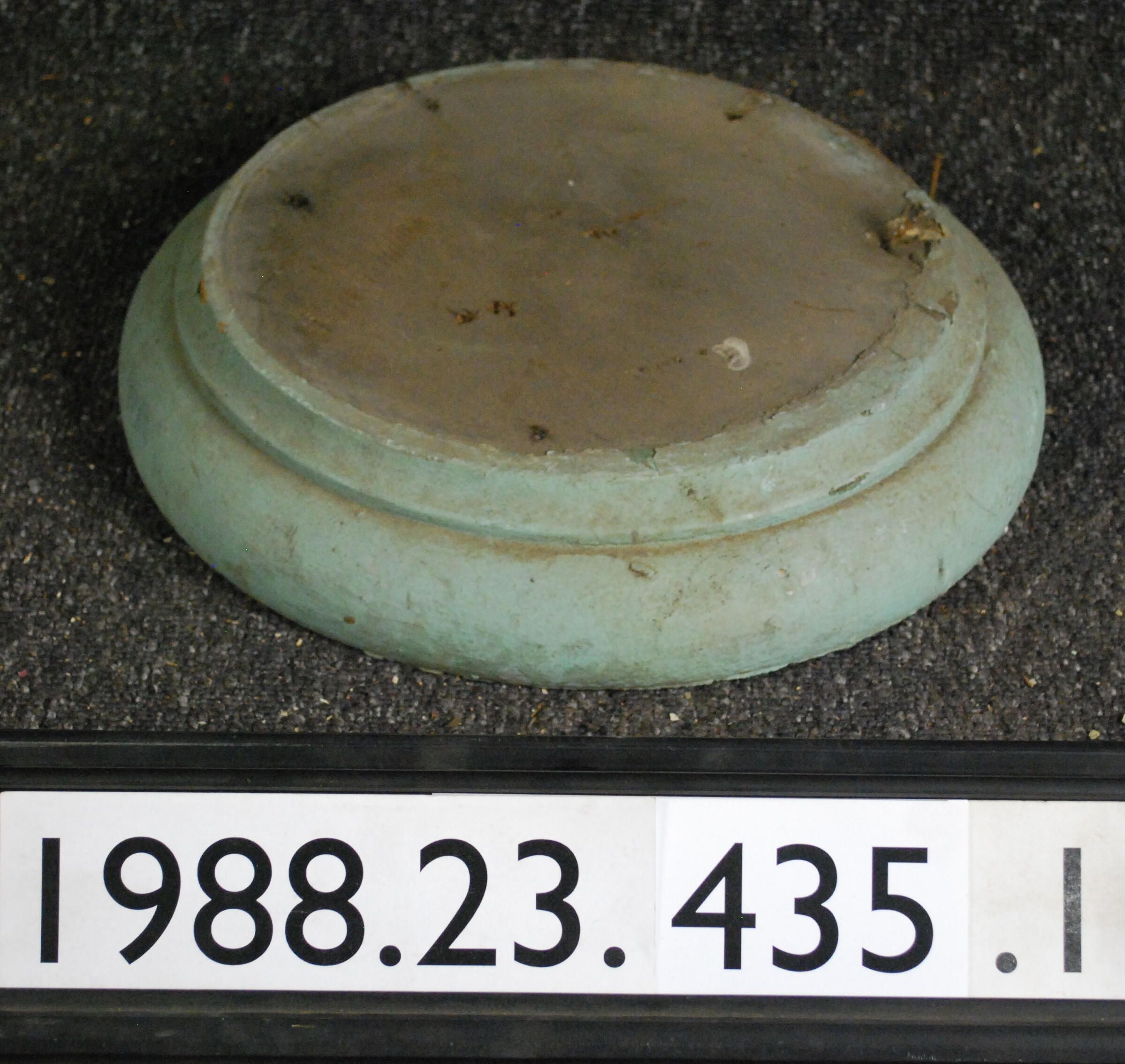 Exterior wood turned base for classical revival Tuscan style column. Moldings at bottom are missing. Painted Green. Inscriptions or Markings: Manufacturer: Place of Manufacturer: Design motif: Style: Finish: Painted Green