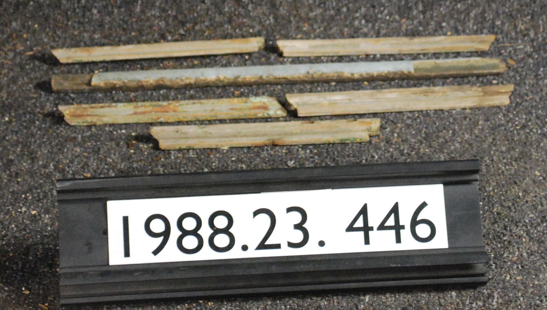 One lot of six moldings. Two different profiles. Possibly from same original. Remnants of green paint - partially stripped.
