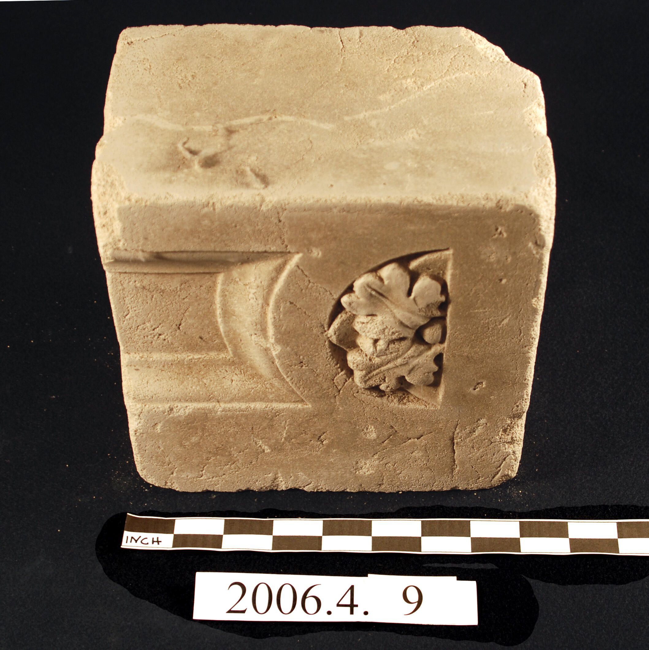 Unfired modern terra cotta block. Buff colored clay. Botanical and recessed Panel motifs. Reverse and end are hollow.