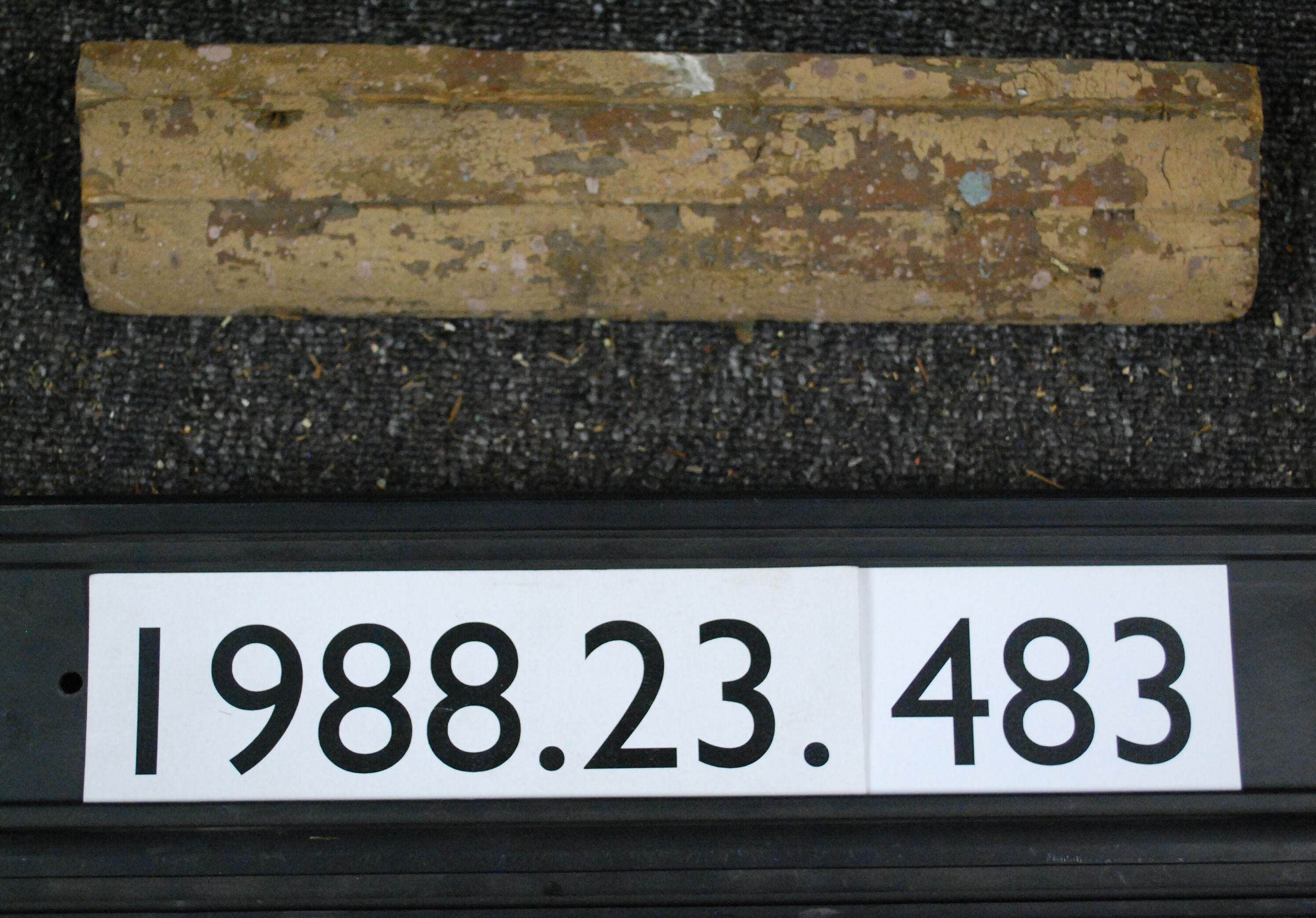 Exterior wood molding. Has dry rot. Painted Brown. Inscriptions or Markings: Manufacturer: Place of Manufacturer: Design motif: Style: Finish: Painted Brown