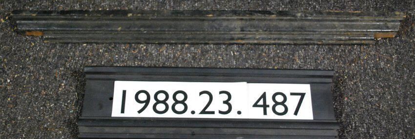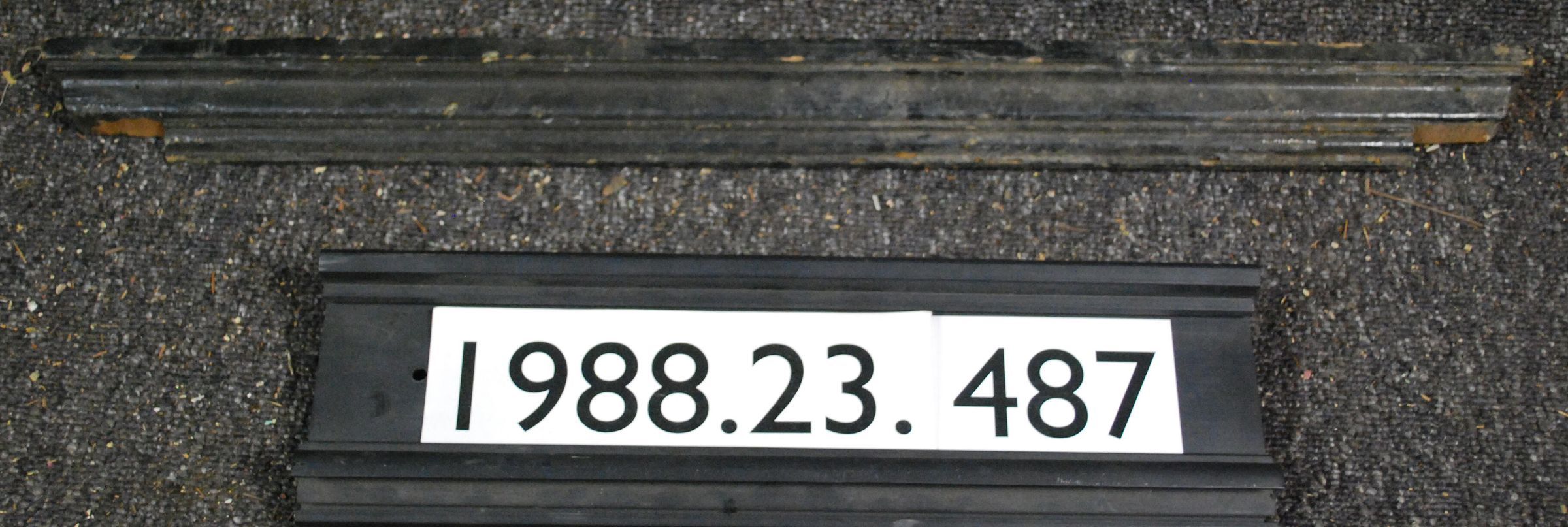 Exterior wood molding. Painted black. Inscriptions or Markings: Manufacturer: Place of Manufacturer: Design motif: Style: Finish: Painted Black