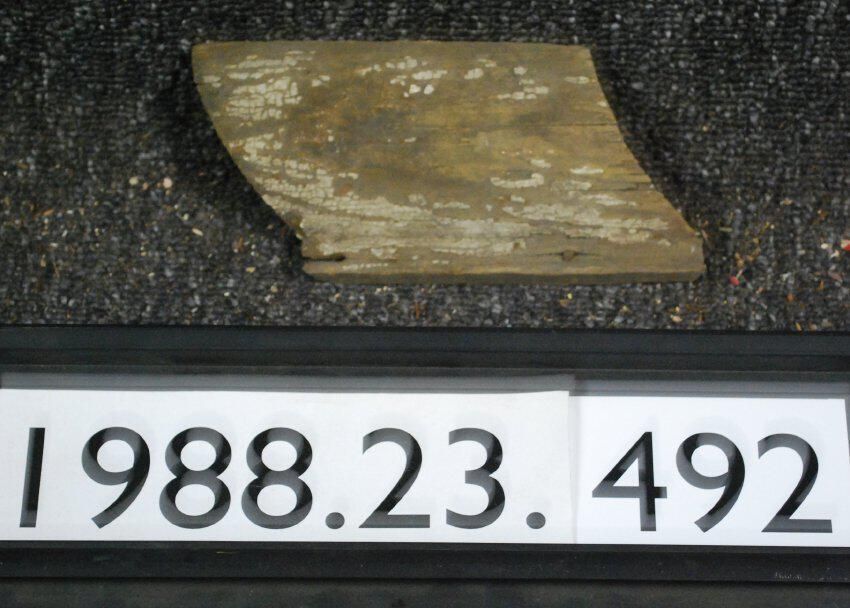 Exterior wood molding-short section. Remnants of paint. Inscriptions or Markings: Manufacturer: Place of Manufacturer: Design motif: Style: Finish: Remnants of Paint