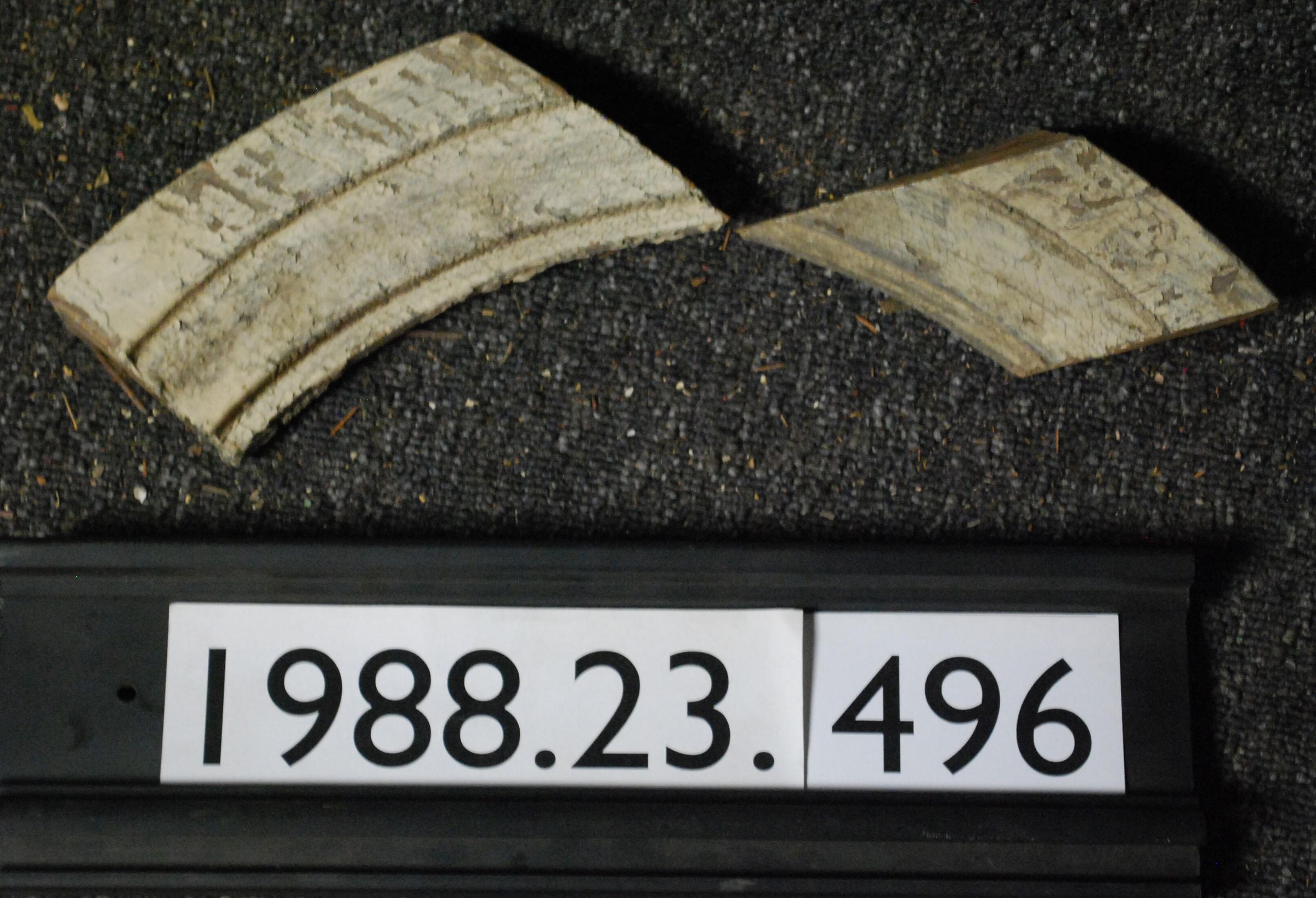 One lot of two exterior wood curved segment fragments from door / window casing. Painted white. Inscriptions or Markings: Manufacturer: Place of Manufacturer: Design motif: Style: Finish: Painted White