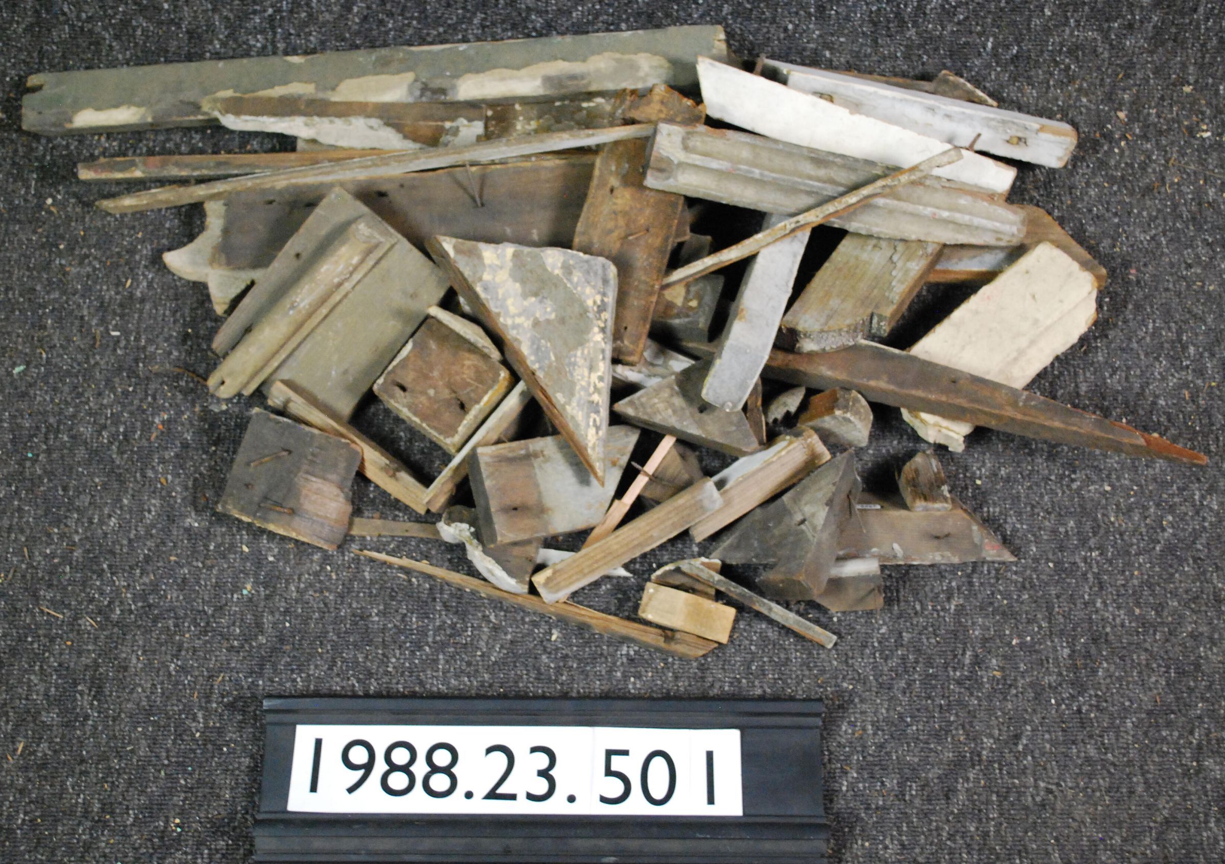 Fifth-three exterior wood Fragments. Includes parts that are unidentified or not matched with other objectsdin collection. Some identification or further matching may be possible.