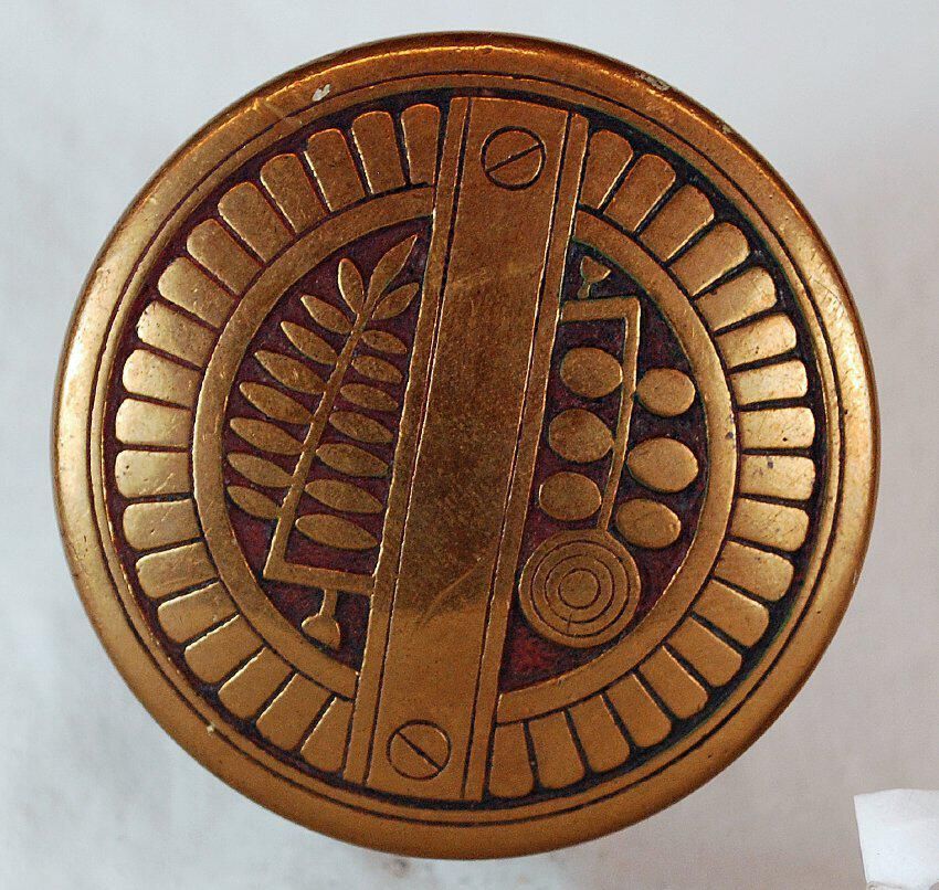Design Name: Manufacture: Nashua Lock Co. Style: Aesthetic Material: Bronze Manufacturing Method: Cast Surface Finish: unpolished VDA Classification: Asymmetric VDA Number: B - 128 Shape: Drum Patent Specifics: Lock Type (If Applicable): Inscription/Makers Mark: Inscription Text: Comments: Two Piece Construction