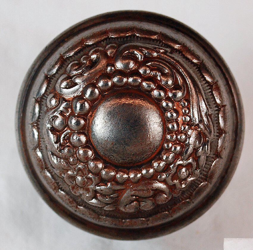 Design Name: Arabian Manufacture: Russell & Erwin Mfg. Co. Style: Material: Steel Manufacturing Method: Wrought / Stamped Surface Finish: Plated VDA Classification: Asymmetric VDA Number: B - 202 Shape: Domed Patent Specifics: Lock Type (If Applicable): Inscription/Makers Mark: Inscription Text: Comments: Two Piece. Stamped Face. Cast Back. Close to No Plating Left.